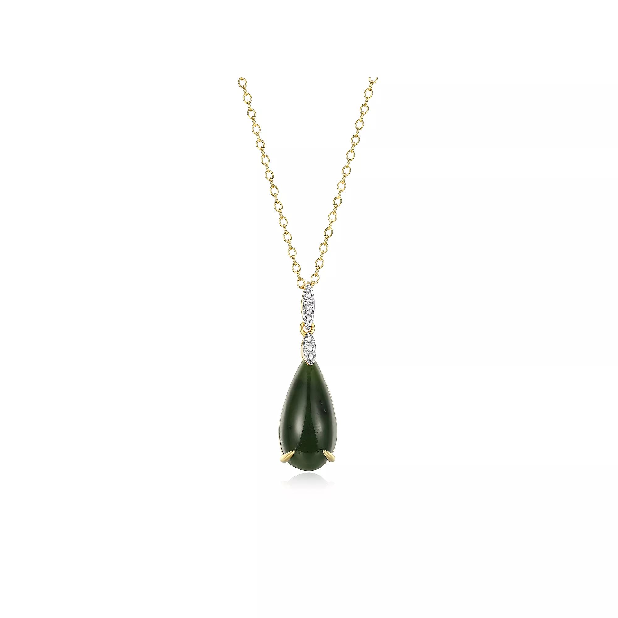 Dynasty Jade 18k Gold over Sterling Silver Nephrite Jade & Diamond Accent Teardrop Pendant Necklace, Women's,