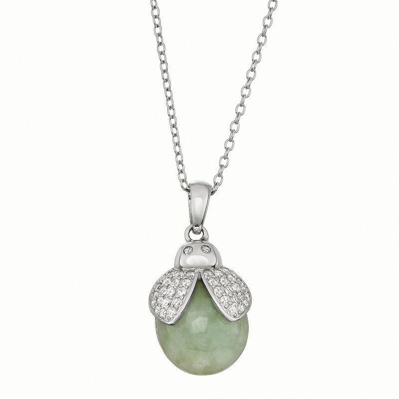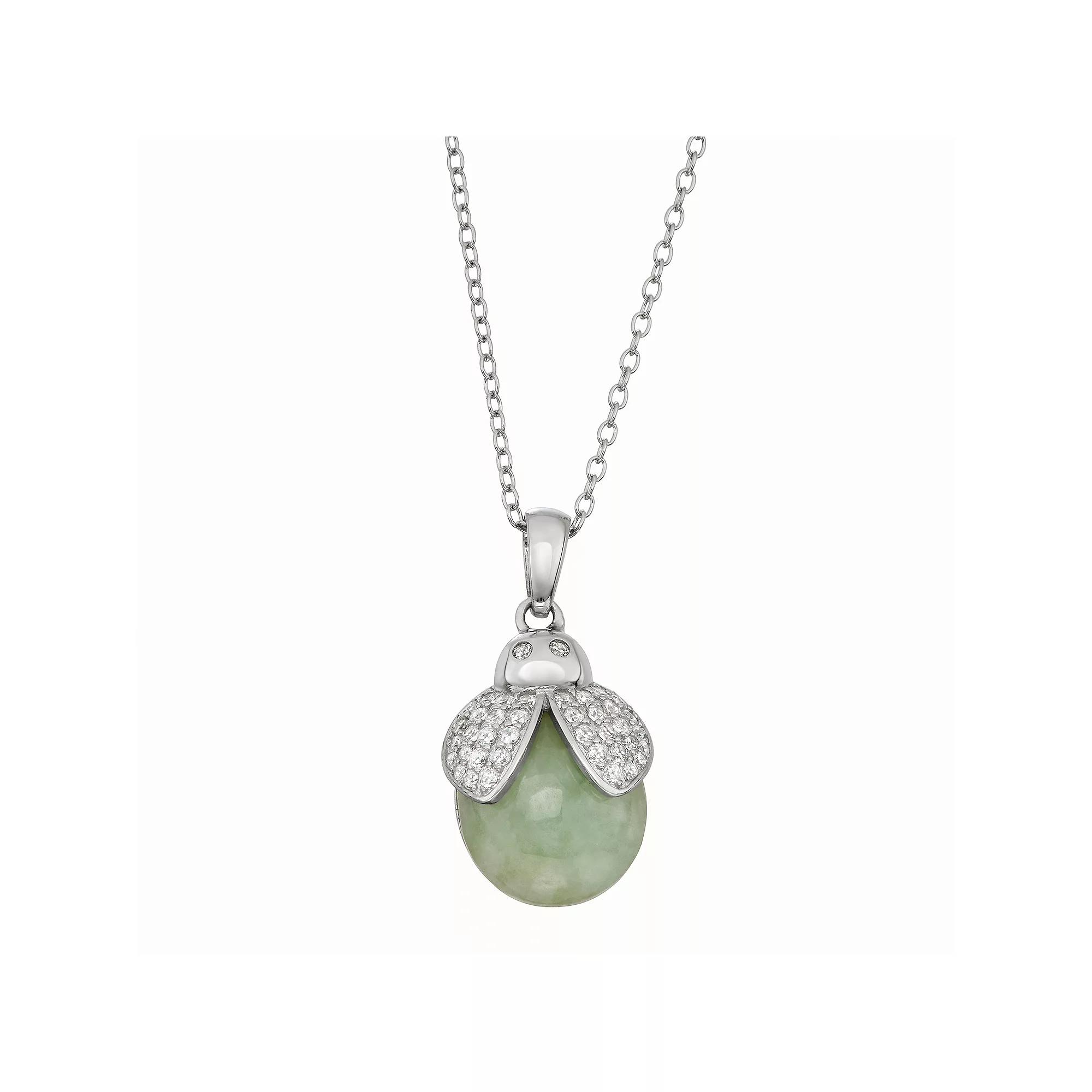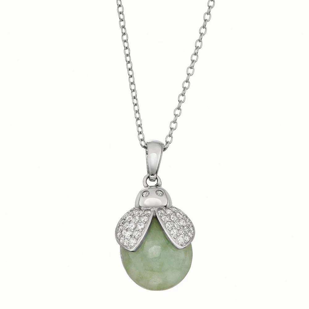 Accent your look with this captivating jade ladybug pendant. Accent your look with this captivating jade ladybug pendant. Pendant size: 7/8L x 7/16W Chain length: 18 in. Chain type: cable Metal: sterling silver Plating: rhodium Finish: polished Packaging: boxedSTONE DETAILS Stone type: jadeite jade, cubic zirconia Total weight: 5 3/4 ct. Center stone weight: 5 ct. Center stone size: 12 mm x 11 mm x 4 mm Shape: oval Setting: pave Gemstones may have been treated to enhance their appearance. Special care may be required. Please visit our Gemstone Treatment & Special Care Guide for more information. Please note, due to the high value of this item, a signature may be required upon delivery. Size: 18. Color: Green. Gender: female. Age Group: adult.