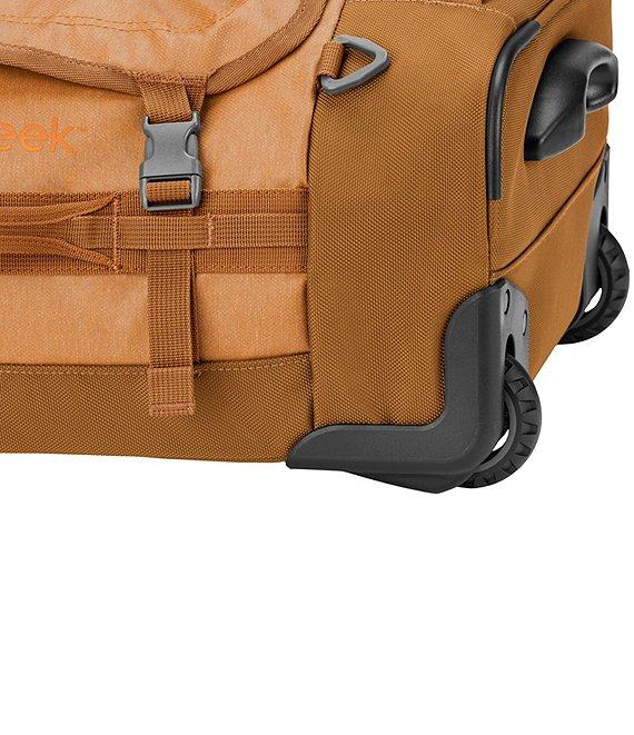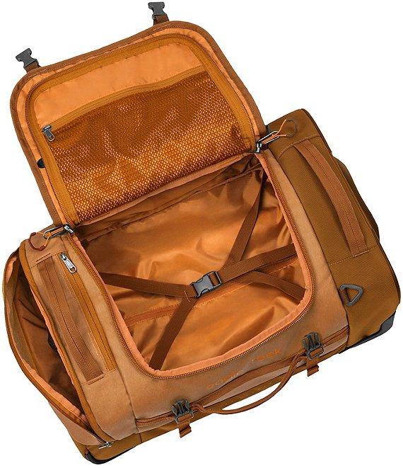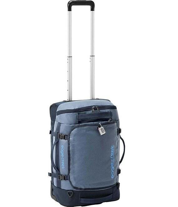 From Eagle Creek, the Cargo Hauler XT Wheel Duffle International Carry-On feautres: Incredibly versatile and ultra-tough, the Cargo Hauler XT Wheel Duffel International Carry-On is made to travel the world with you. You can carry it like a backpack, wheel it around town, or hoist it up by its padded top haul handles for ultimate flexibility. Made from highly abrasion-resistant and water repellant materials, this duffel will keep you going for miles to come. The adventurer s multitool, the Cargo Hauler XT 21.5 Wheeled Duffel rolling carry-on handles the gamut. With a telescoping grip and heavy-duty wheels, it virtually floats across airport floors. Yet reinforced grab handles make for easy hoisting atop a roof rack, and convertible backpack straps facilitate stairway access to fifth-floor flats. Made from recycled fabrics, its abundant pockets and pouches keep accessories within reach, and ultra-tough construction (including a structured back and bottom) shield contents from shocks. It's durable yet versatile, rugged yet refined. Product Details Internal adjustable compression Internal key clip Telescoping handle Heavy-duty external compression straps Heavy-duty lash points and grab handles TPU-reinforced easy grab, reflective zipper pulls U-shaped zippered opening with storm flap and central lock point Two heavy-duty wheels with corner bumpers for protection Three carry options: Side Carry, Luggage Handle, Backpack with zip-away backpack straps Easily organize with the Pack-It System ( sold separately) External dimensions approx. 21.5 x 13.75 x 7.75 in. / 55 x 35 x 20 cm Weight 5 lb. 9 oz. / 2523 g Internal capacity 2197 cu. in. / 36 L This is a calculated volume taken from the product dimensions. Actual dimensions and volume may vary slightly by product due to sewing tolerances throughout the production process. Materials 800D Nylon Dobby 1680D Ballistic Polyester; Recycled 200D Polyester Imported.