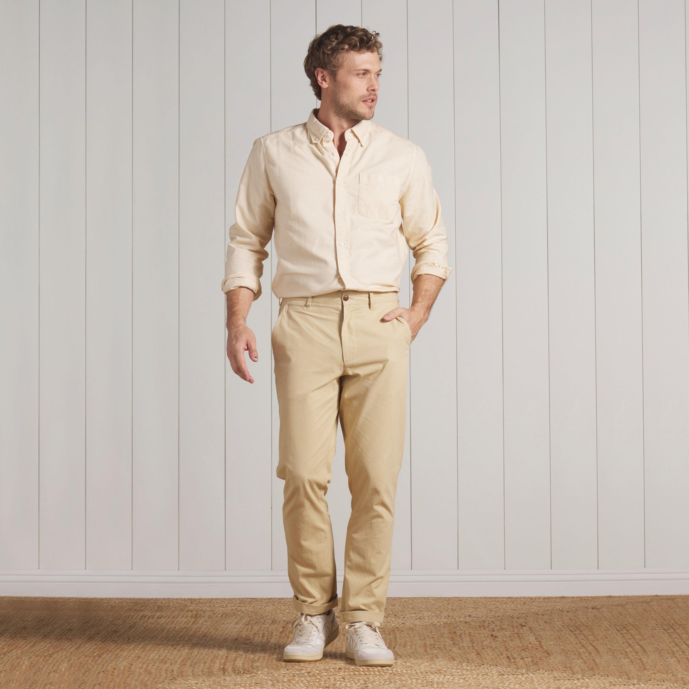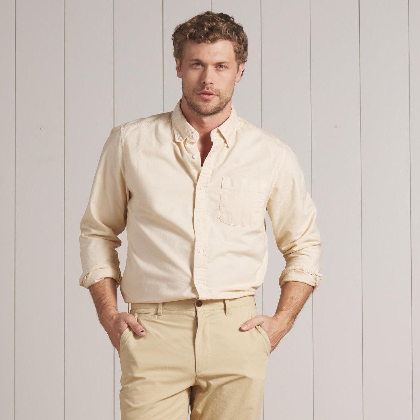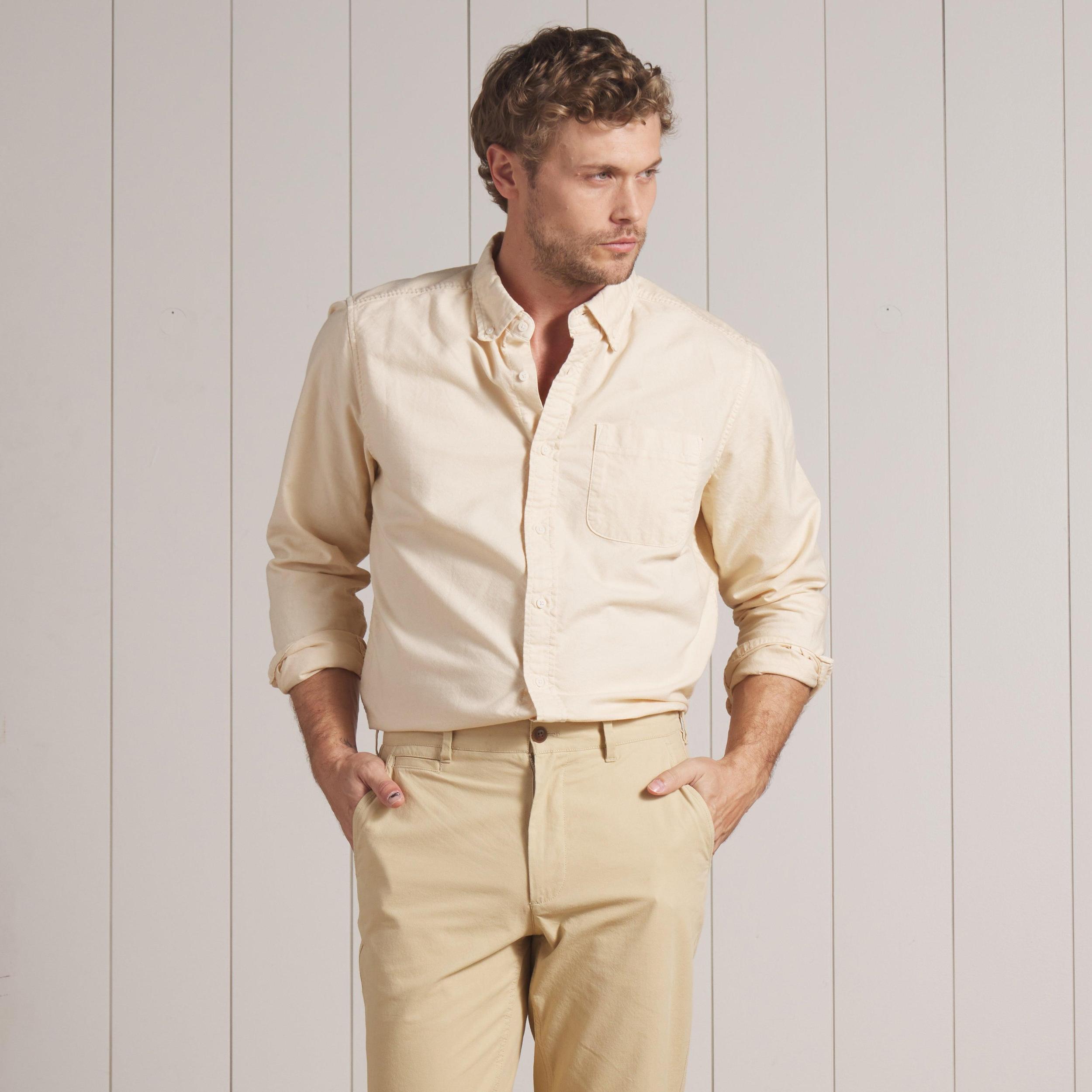 Ah, the Classic Oxford: long may it reign. While this "every guy" staple is technically distinguished by its collar buttons, the shirt owes its decades-long popularity among everyone from preps, to rude boys, to mods and millennials, to its enduringly simple and classic design. The shirts are meant to be the solid "fail-safe" option when you waver between dressing up or dressing down. Our Eagle Creek is sensible enough not to mess with a good thing, but it does include a few thoughtful improvements to the traditional wear experience: we’ve swapped the sometimes stuffy oxford cloth of old for a tightly woven, sanforized cotton fabric that will retain its shape and size, and we’ve pre-broken the garment with a vigorous sand wash to give it our signature weathered hand. Better yet, with every wash and every wear, the shirt builds character. Like your favorite jeans. This is one looker that’ll always be a pleasure to wear, and is guaranteed to never go out of style. The Model is also wearing: Mercer Duck Canvas Officer Pants - Biscotti. Model: Chris is wearing size medium and is 6'. ----Details---- Modern Fit Button down collar Chest patch pocket Curved hem Reinforced "dog house" gussets Sand washed Imported ----Materials---- 100% Cotton ----Size & Fit---- Measuring Method: All measurements are in inches and based on a “flat” garment, as shown below. For comparison with one of your existing garments, please lay garment on a flat surface and follow the key measurement points. For chest and neck, if you double the flat measurement, you will get close to the full body measurement. ----Care---- Machine Wash Cold Separately Do Not Soak Before Washing Do Not Bleach Remove Promptly Tumble Dry Low Or Hang Dry In Shaded Area Cool Iron If Necessary
