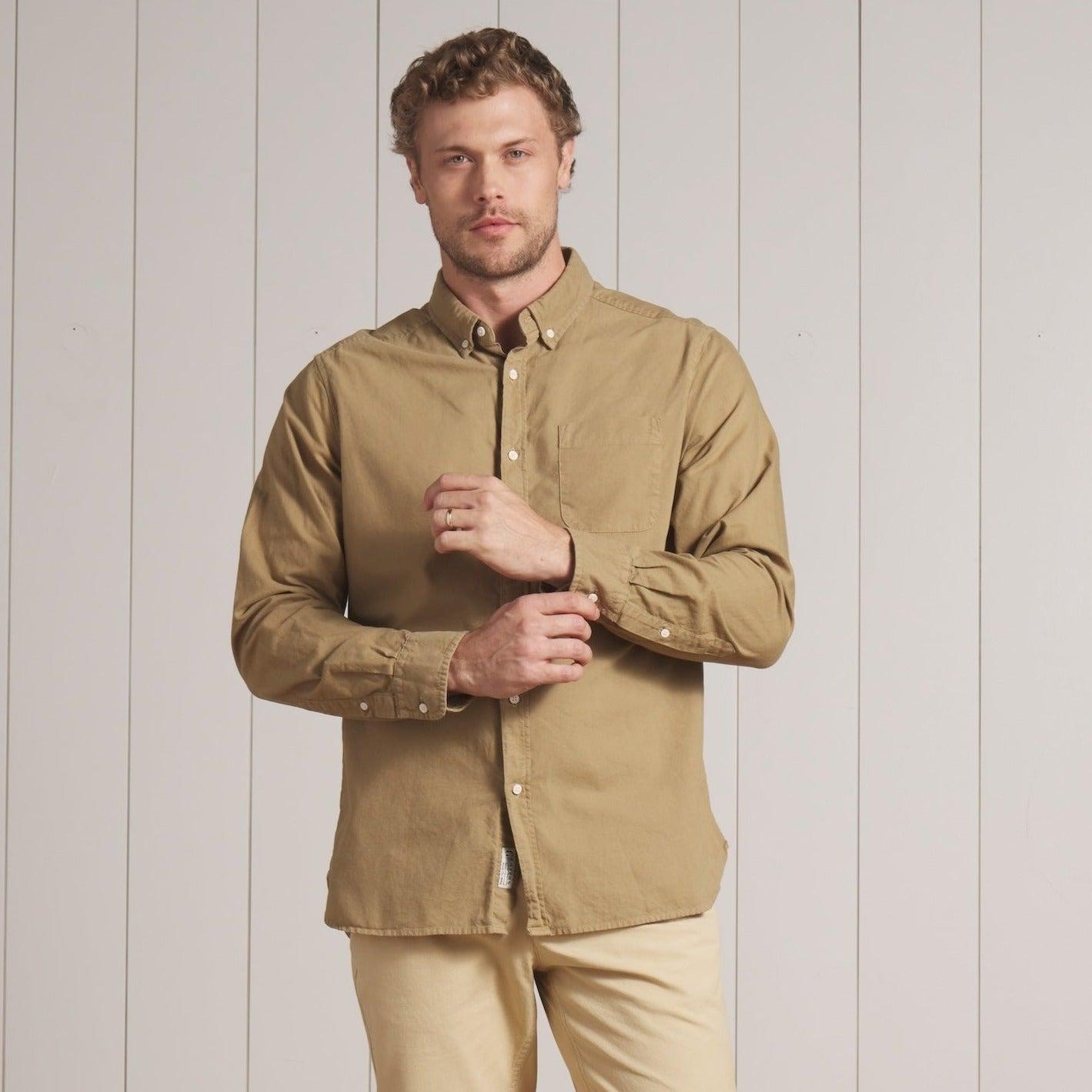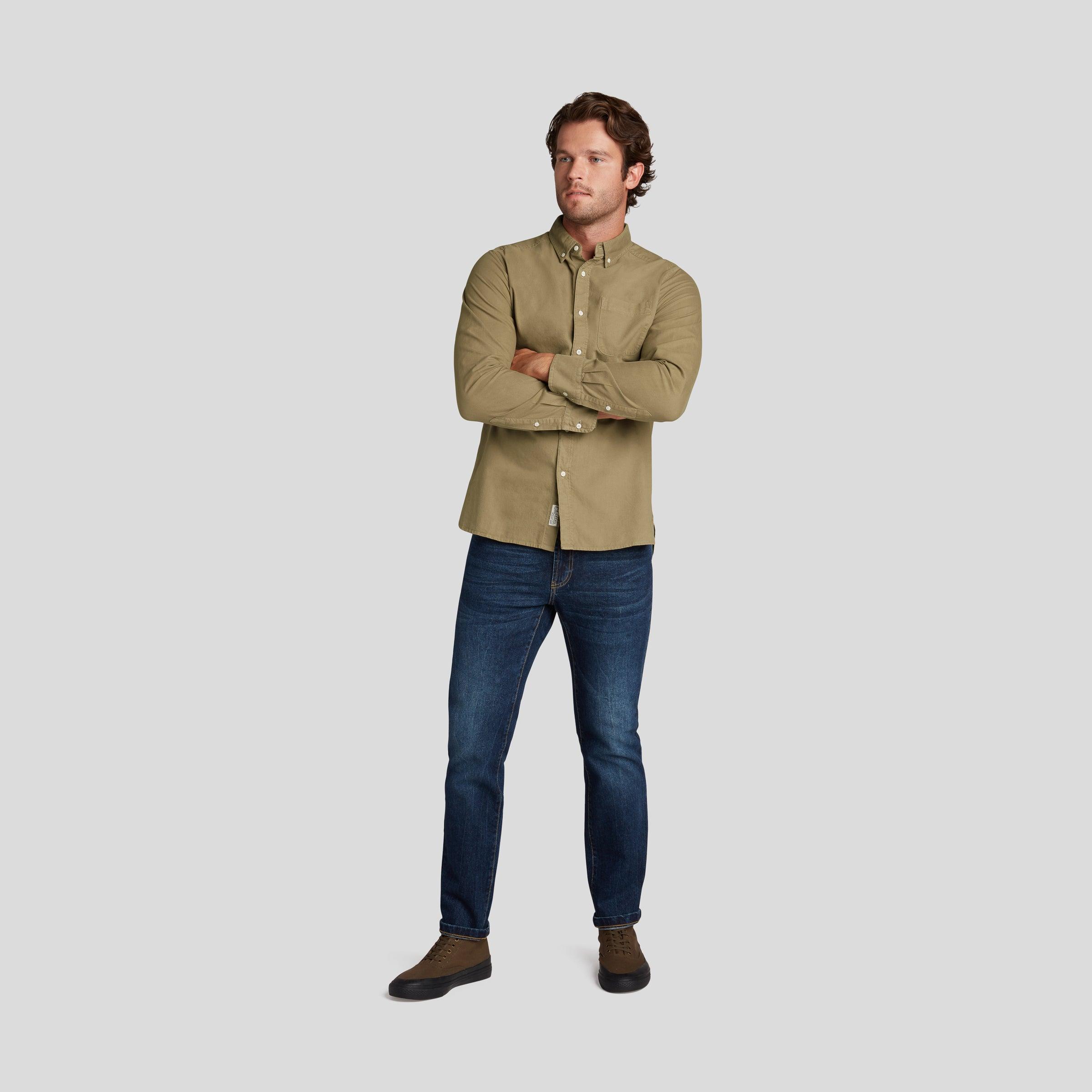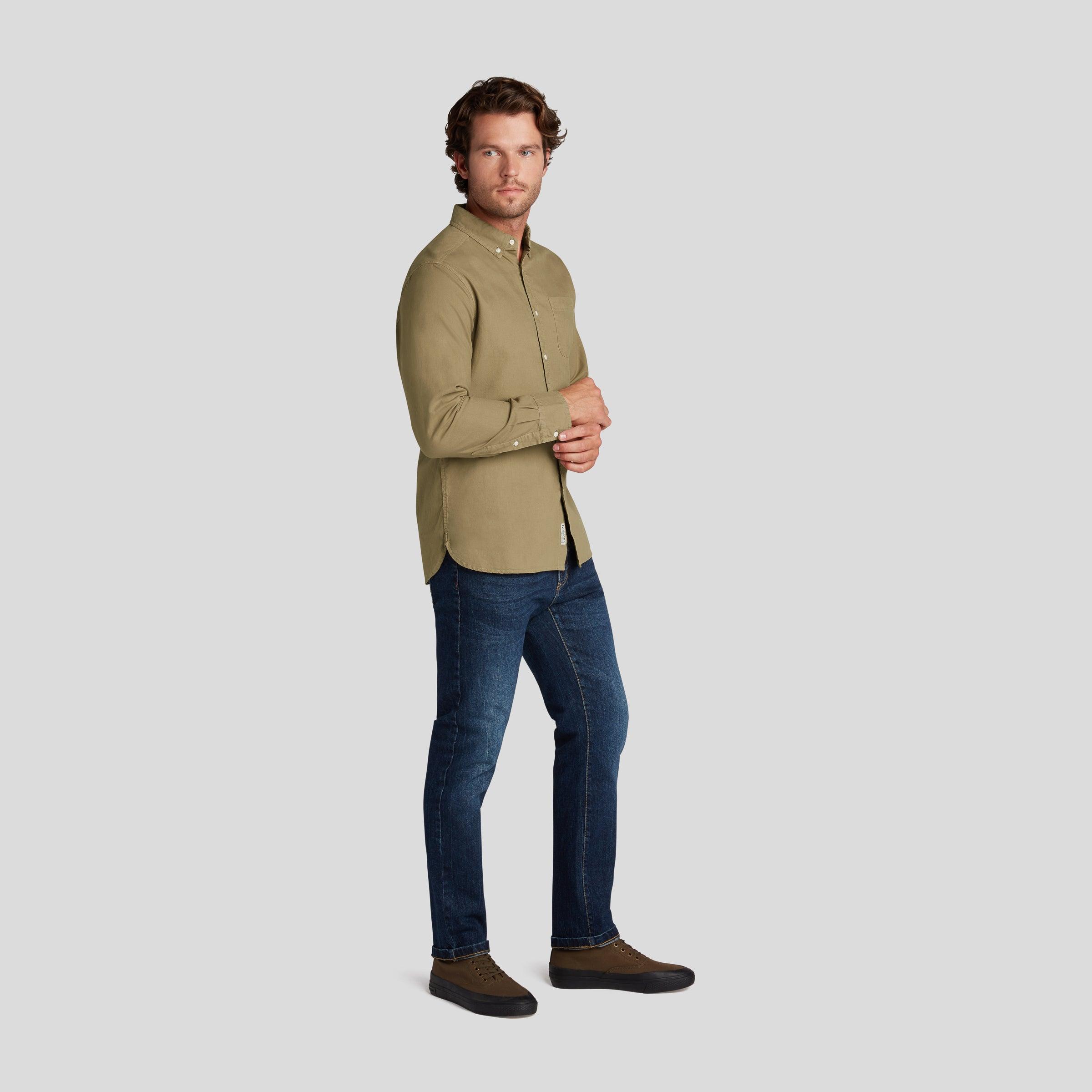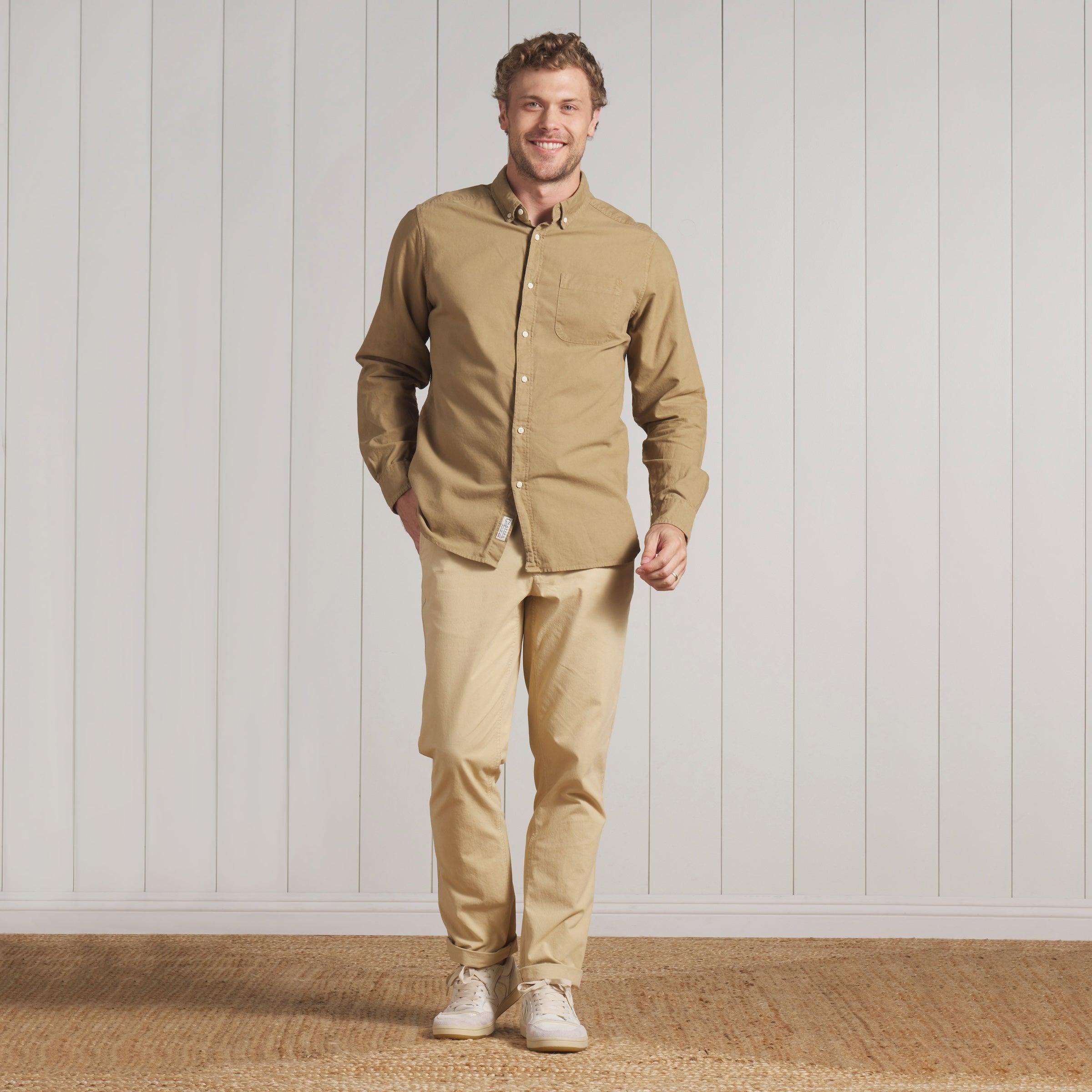 Ah, the Classic Oxford: long may it reign. While this "every guy" staple is technically distinguished by its collar buttons, the shirt owes its decades-long popularity among everyone from preps, to rude boys, to mods and millennials, to its enduringly simple and classic design. The shirts are meant to be the solid "fail-safe" option when you waver between dressing up or dressing down. Our Eagle Creek is sensible enough not to mess with a good thing, but it does include a few thoughtful improvements to the traditional wear experience: we’ve swapped the sometimes stuffy oxford cloth of old for a tightly woven, sanforized cotton fabric that will retain its shape and size, and we’ve pre-broken the garment with a vigorous sand wash to give it our signature weathered hand. Better yet, with every wash and every wear, the shirt builds character. Like your favorite jeans. This is one looker that’ll always be a pleasure to wear, and is guaranteed to never go out of style. The Model is also wearing: Mercer Duck Canvas Officer Pants - Biscotti and Edward Stretch Straight Fit Denim - Blue Wash. Model: Chris is wearing size medium and is 6'; Jacob is wearing size medium and is 6'2". ----Details---- Modern Fit Button down collar Chest patch pocket Reinforced "dog house" gussets Curved hem Sand washed Imported ----Materials---- 100% Cotton ----Size & Fit---- Measuring Method: All measurements are in inches and based on a “flat” garment, as shown below. For comparison with one of your existing garments, please lay garment on a flat surface and follow the key measurement points. For chest and neck, if you double the flat measurement, you will get close to the full body measurement. ----Care---- Machine Wash Cold Separately Do Not Soak Before Washing Do Not Bleach Remove Promptly Tumble Dry Low Or Hang Dry In Shaded Area Cool Iron If Necessary