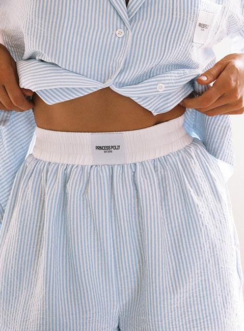 Striped sleep pants High rise, elasticated waistband, twin hip pockets, straight leg Non-stretch material, unlined Princess Polly Lower Impact 100% reclaimed polyester Cold gentle machine wash Length of size US 4 / AU 8 waist to hem: 110cm / 33.3in Allie is wearing a size US 2 / AU 6