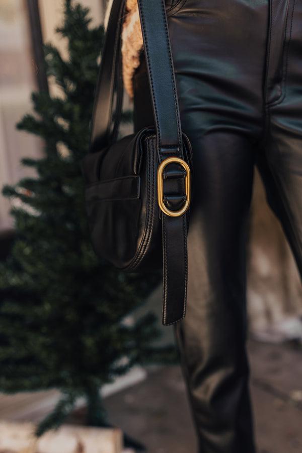 - Keep your coffee run necessities on hand in this trendy crossbody! - Faux leather material - Gold colored hardware - A single faux adjustable shoulder strap - A fully lined interior with two additional interior pockets and top zip/magnetic flap closure