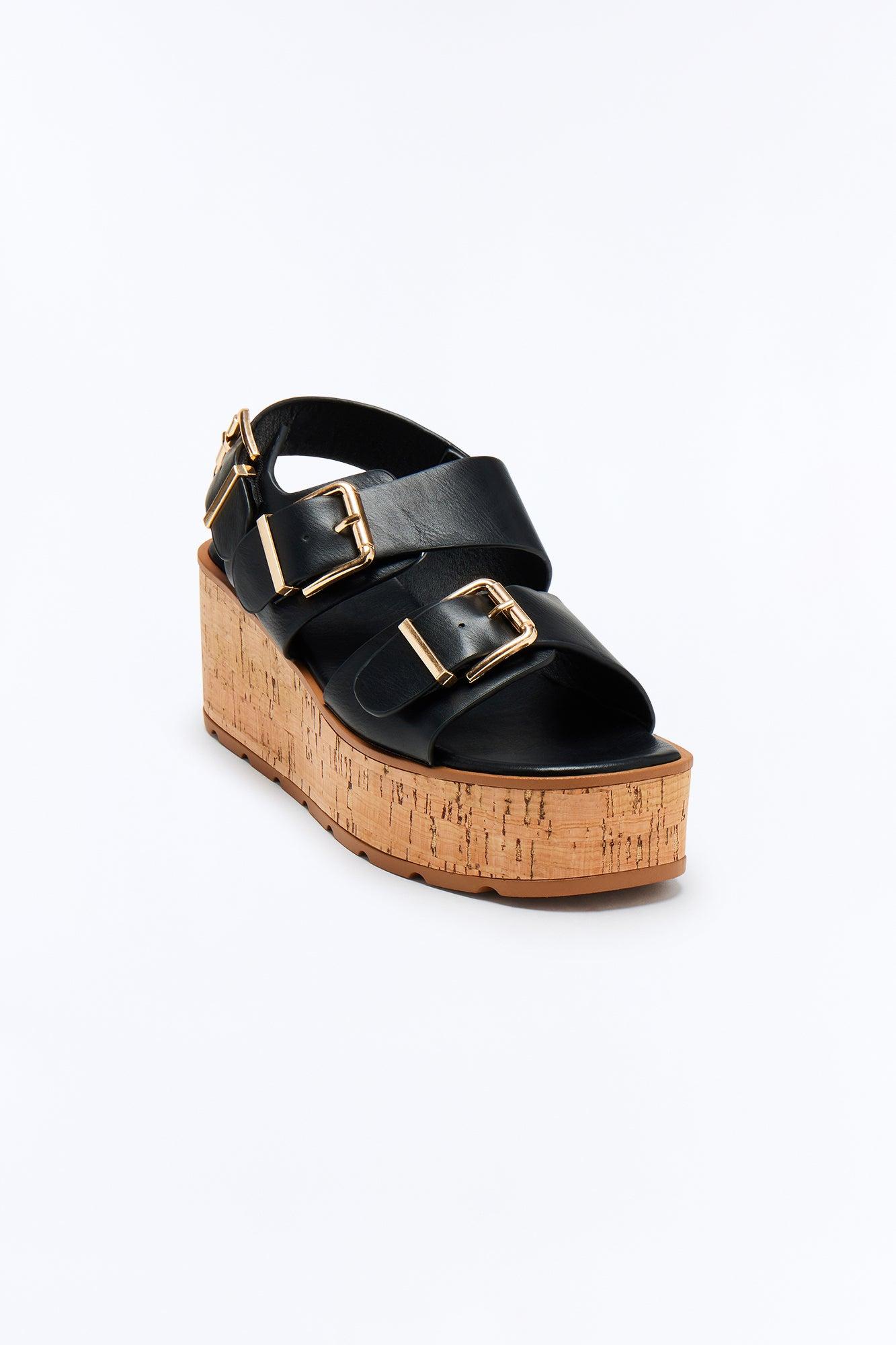 Available In Black And Taupe. Platform Flat Sandals Cork Buckle Detail Round Toe 2.25" Mid Platform Imported California Proposition 65WARNING: Cancer and Reproductive Harm - www.P65Warnings.ca.gov.