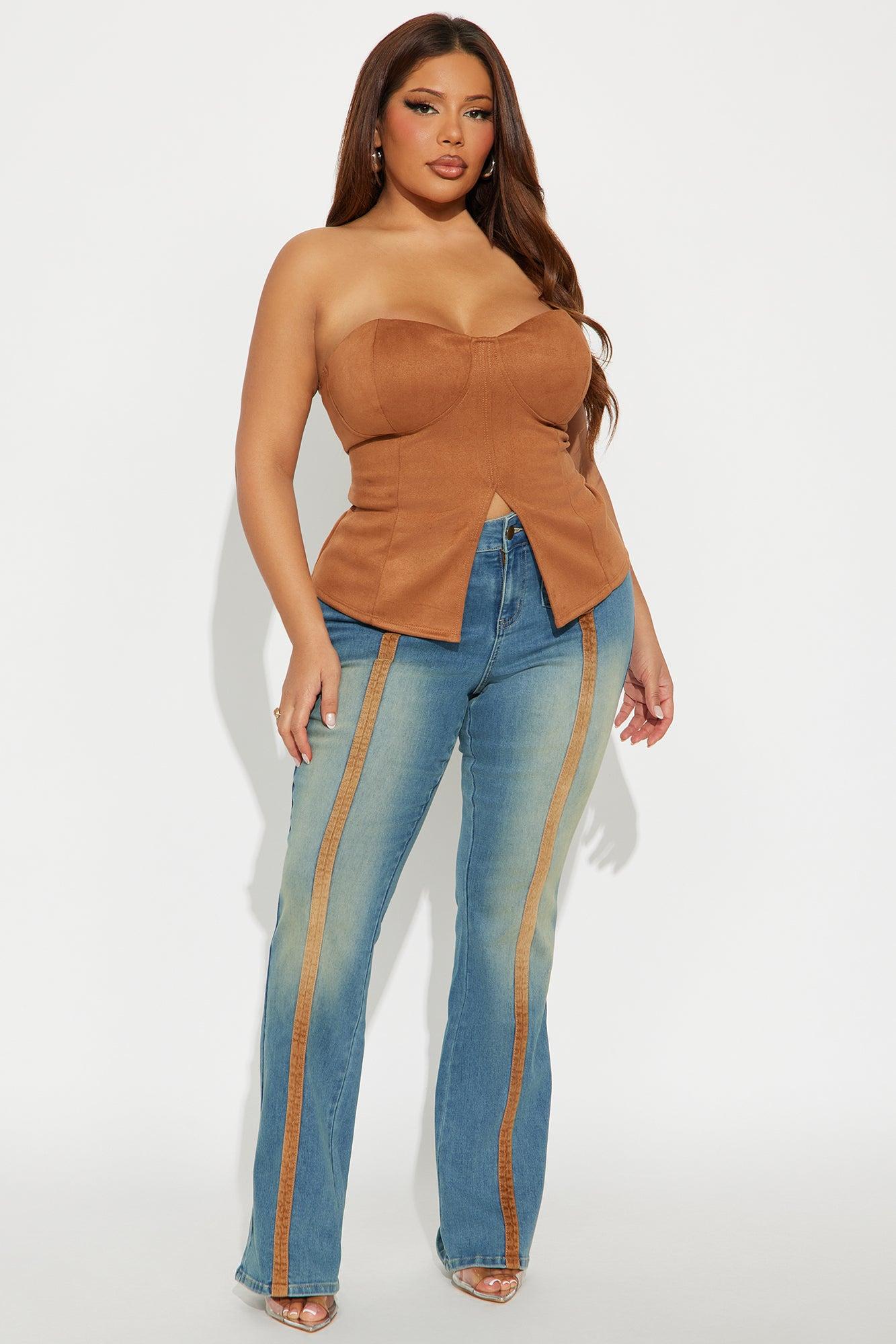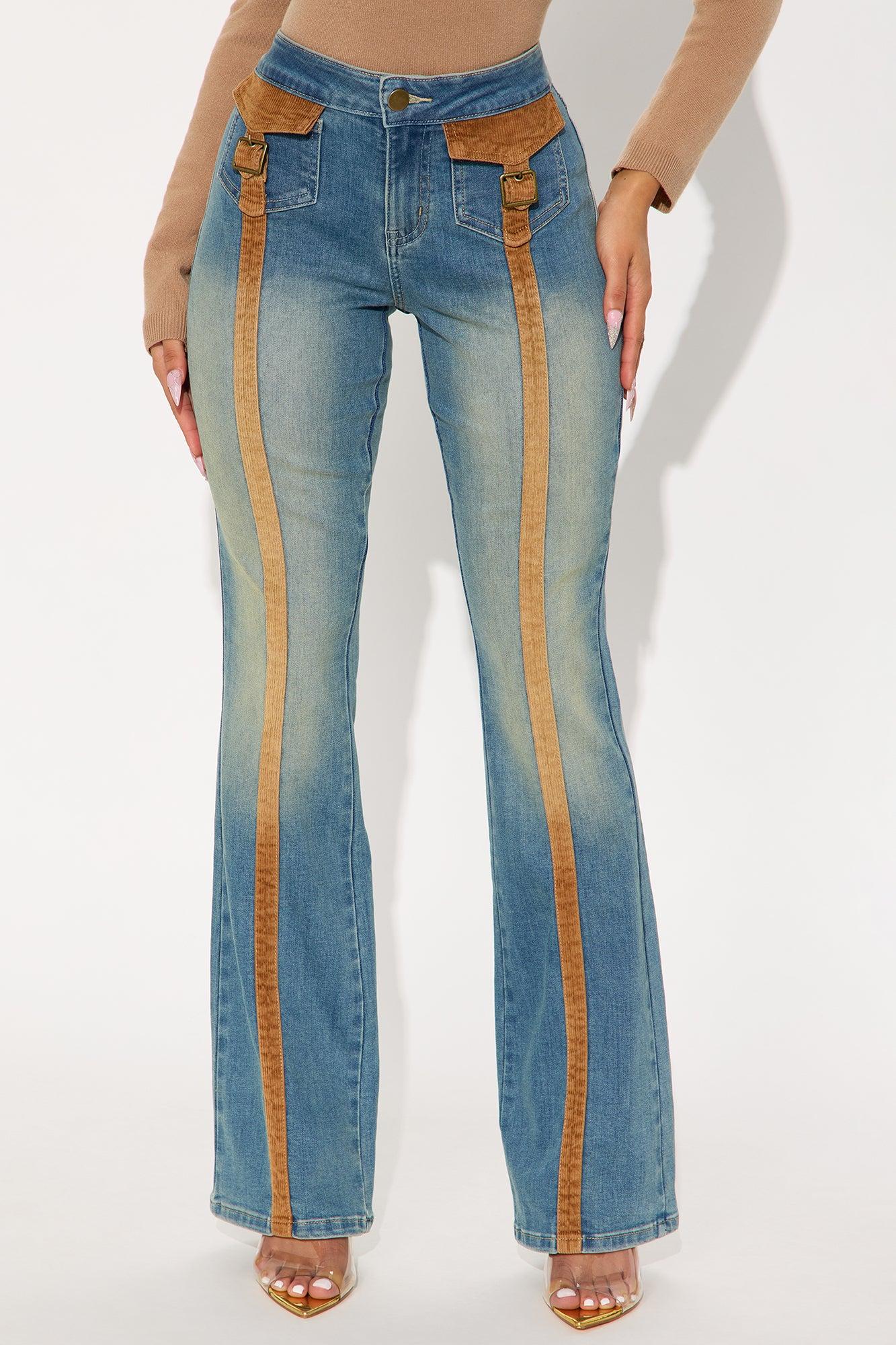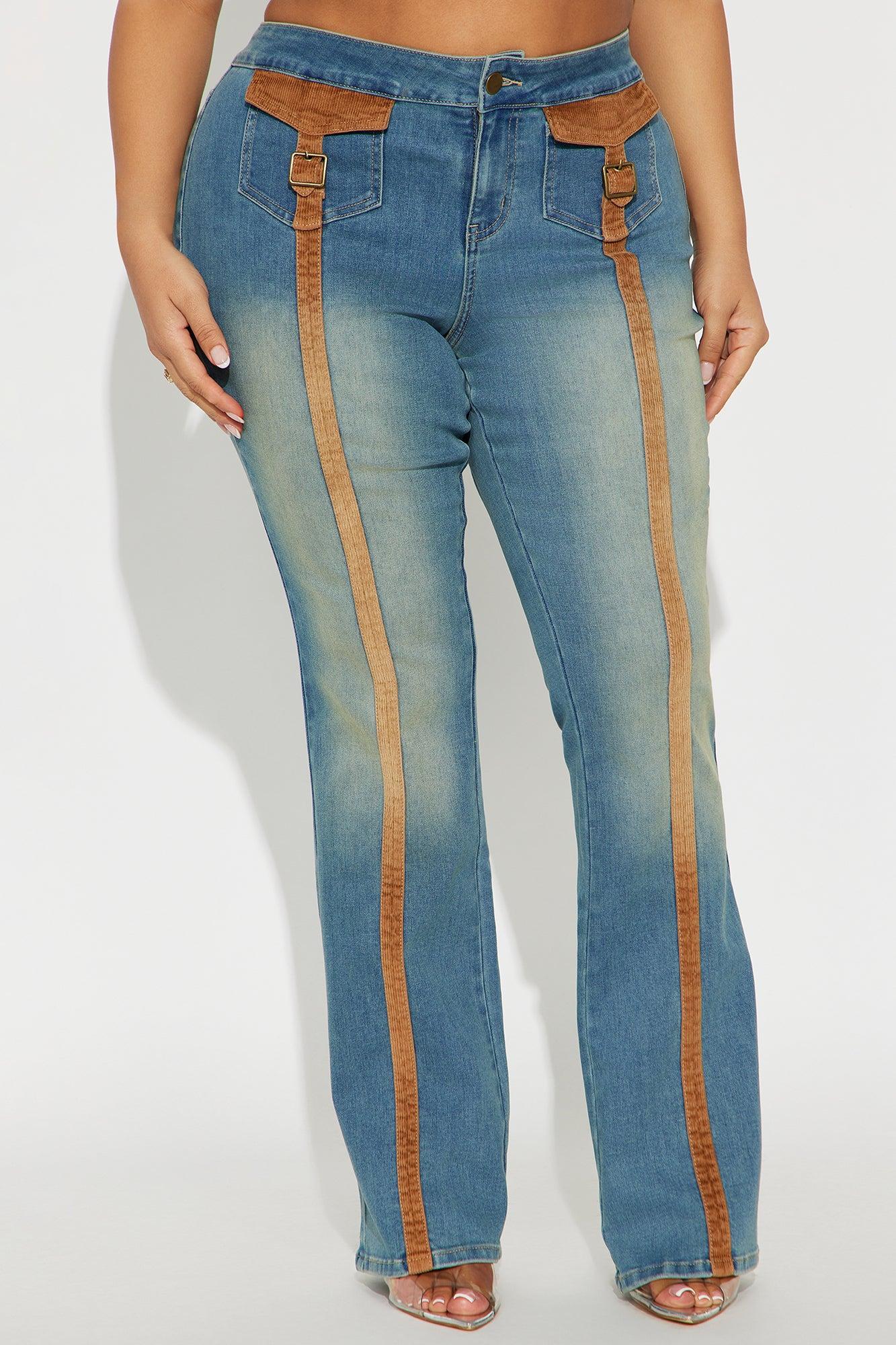 Available In Vintage Wash. Bootcut Jean Front Flap Pockets Back Pockets Corduroy Trim 9" Mid Rise 34" Inseam Medium Stretch Disclaimer: Due To The Specialized Wash Process, Each Garment Is Unique. Self : 69% Cotton 29% Polyester 2% Spandex Imported