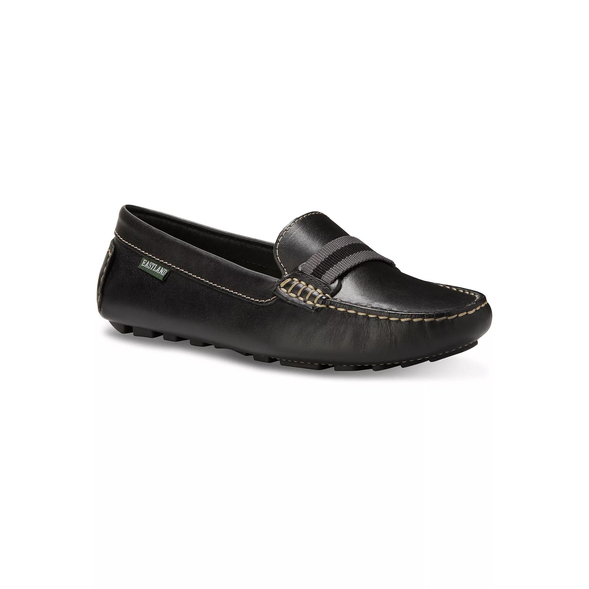 Step into style with these Eastland Whitney women's loafers. Click this FOOTWEAR GUIDE to find the perfect fit and more! - https://www.kohls.com/feature/shoesizeguide.jsp. SHOE FEATURES: Comfort insole supports and conforms to the curves of your foot, Rubber driving moc outsole for great comfort, slip resistance and durability. SHOE CONSTRUCTION: Leather upper, Textile lining, Rubber outsole. SHOE DETAILS: Moc toe, Slip-on, Foam footbed. Size: 6. Color: Black. Gender: female. Age Group: adult.