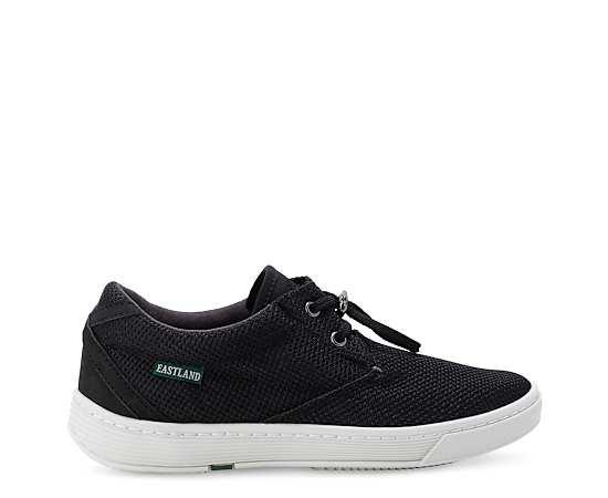 Eastland Beacon Womens Sneaker Black Lightweight and airy, the Eastland Beacon Sneaker is just right for the dog days of summer. Featuring a breathable mesh upper , this lined Shoe is great for walking around town. The extra thick insole ensures all-day comfort, while the Rubber tread works sees you through the season. Mesh upper Toggle closure Microfiber lining Cushioned insole Rubber tread sole
