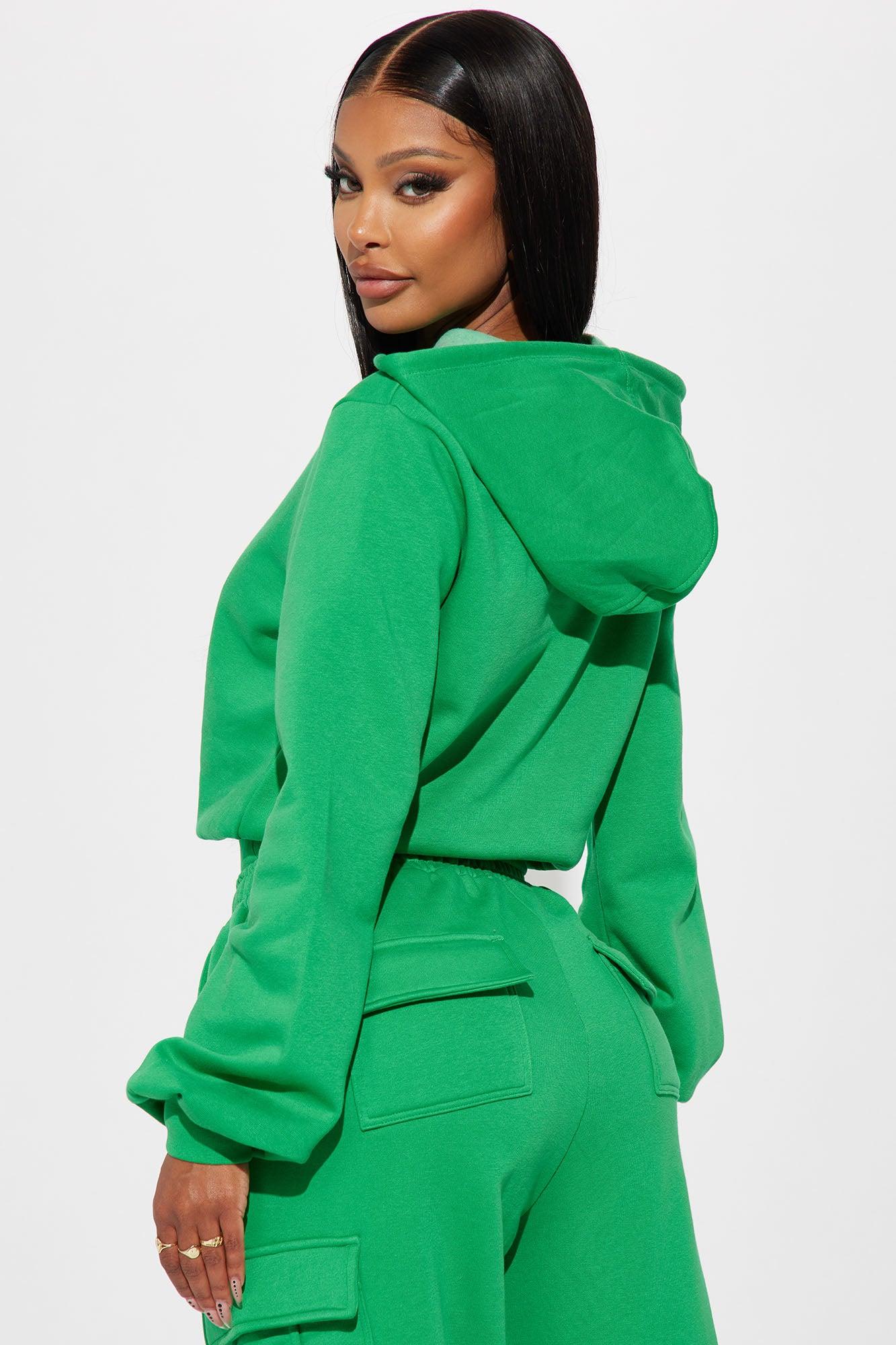 Available In Orange And Green. Long Sleeve Hoodie Cropped Pair With "Easy Going Lounge Wide Leg Pant" 80% Cotton 20% Polyester Imported