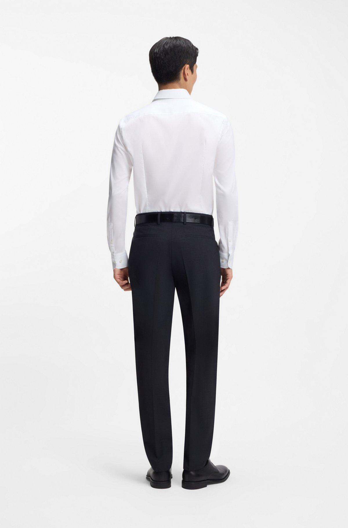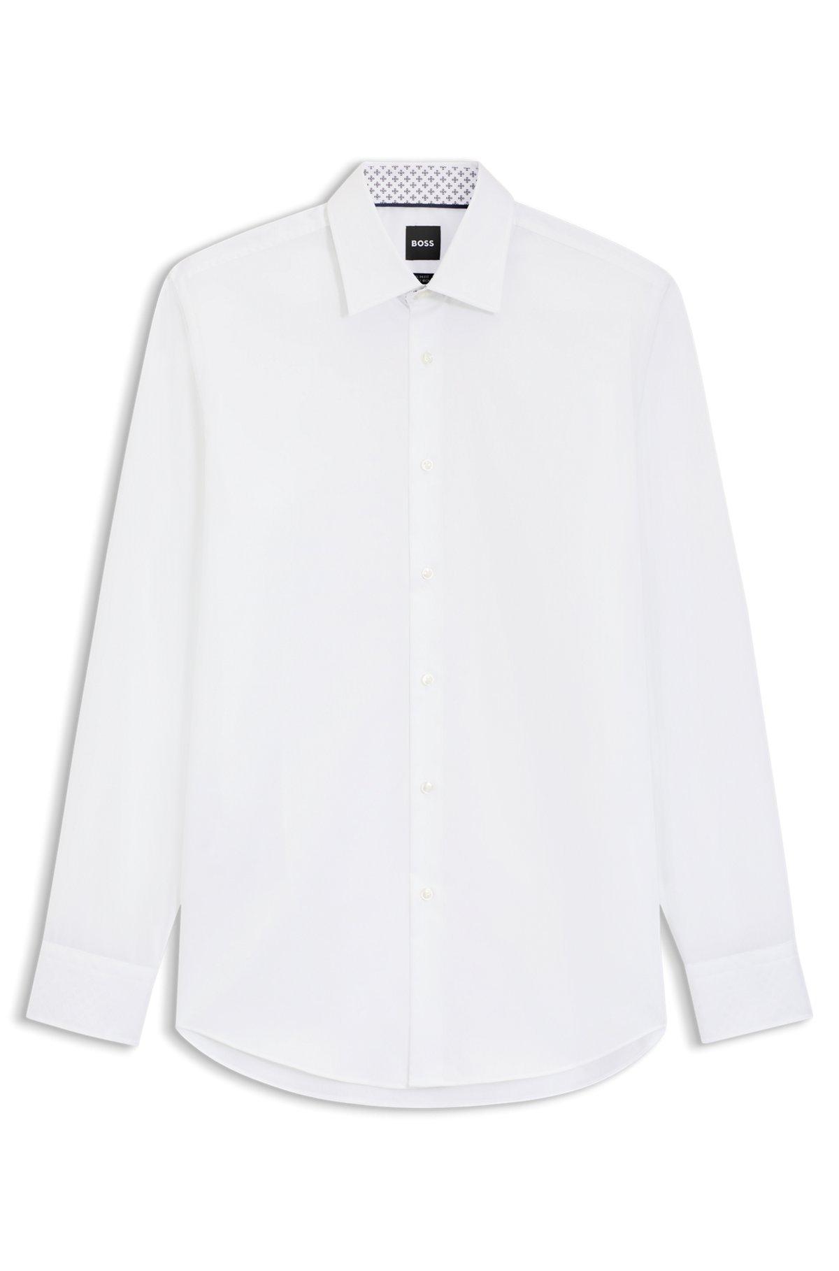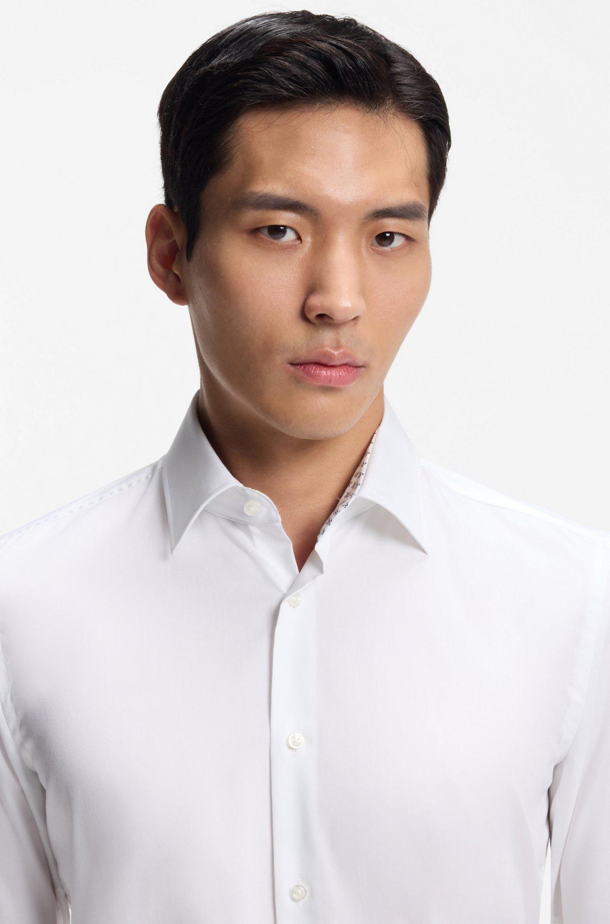 Crafted in easy-iron cotton poplin, this slim-fit BOSS Menswear shirt combines timeless style with an extra-soft touch. Inner fabric contrasts. Natural stretch. Please note that the white colorway – made from cotton woven in Austria – has a special finish that holds its brilliance for an extra-white look, wash after wash.