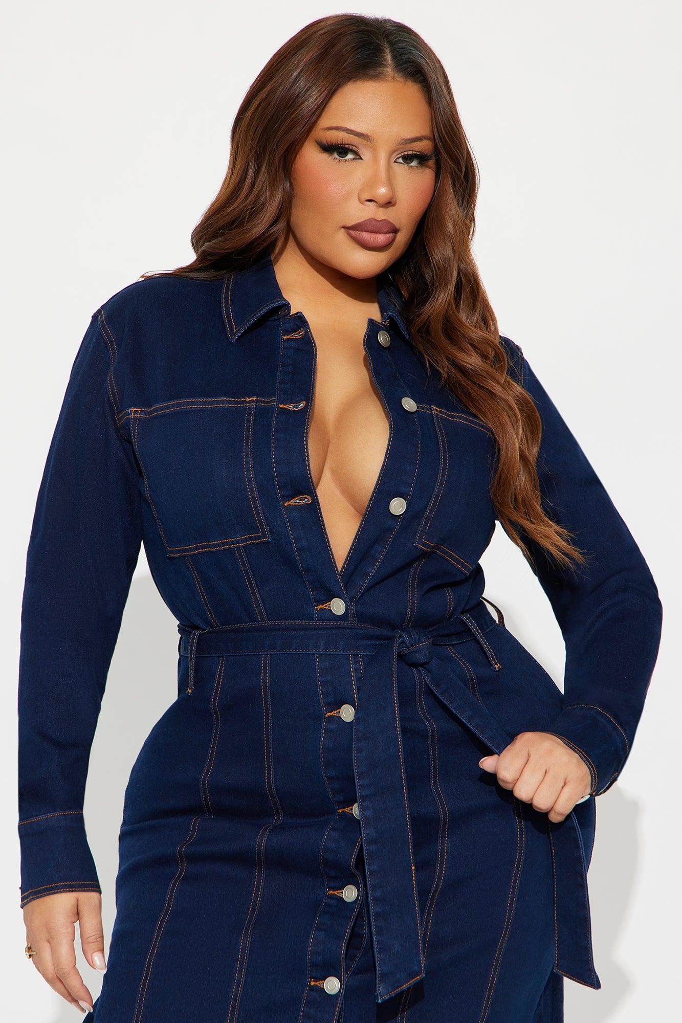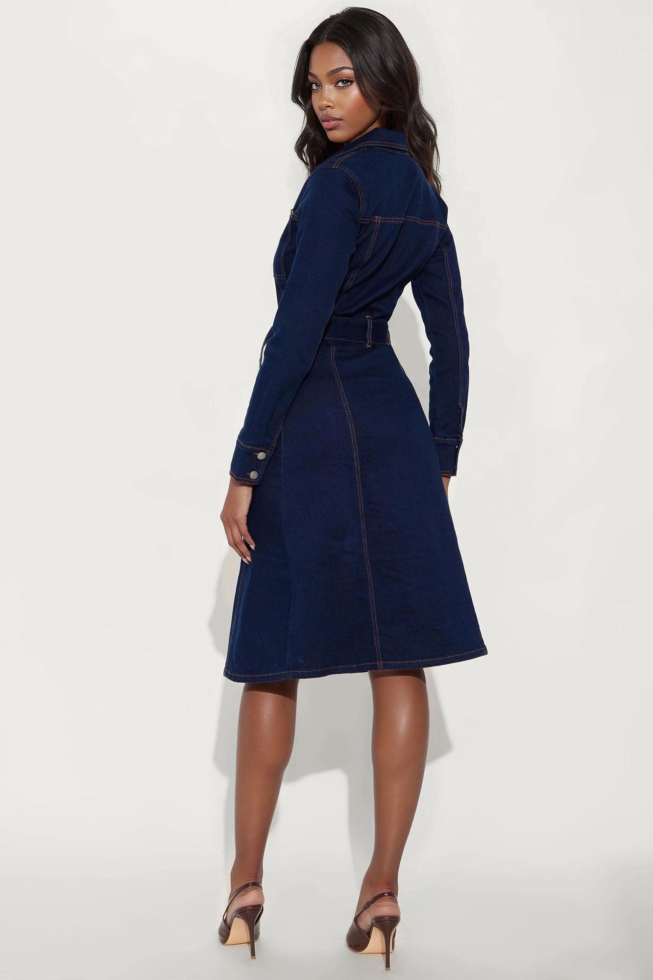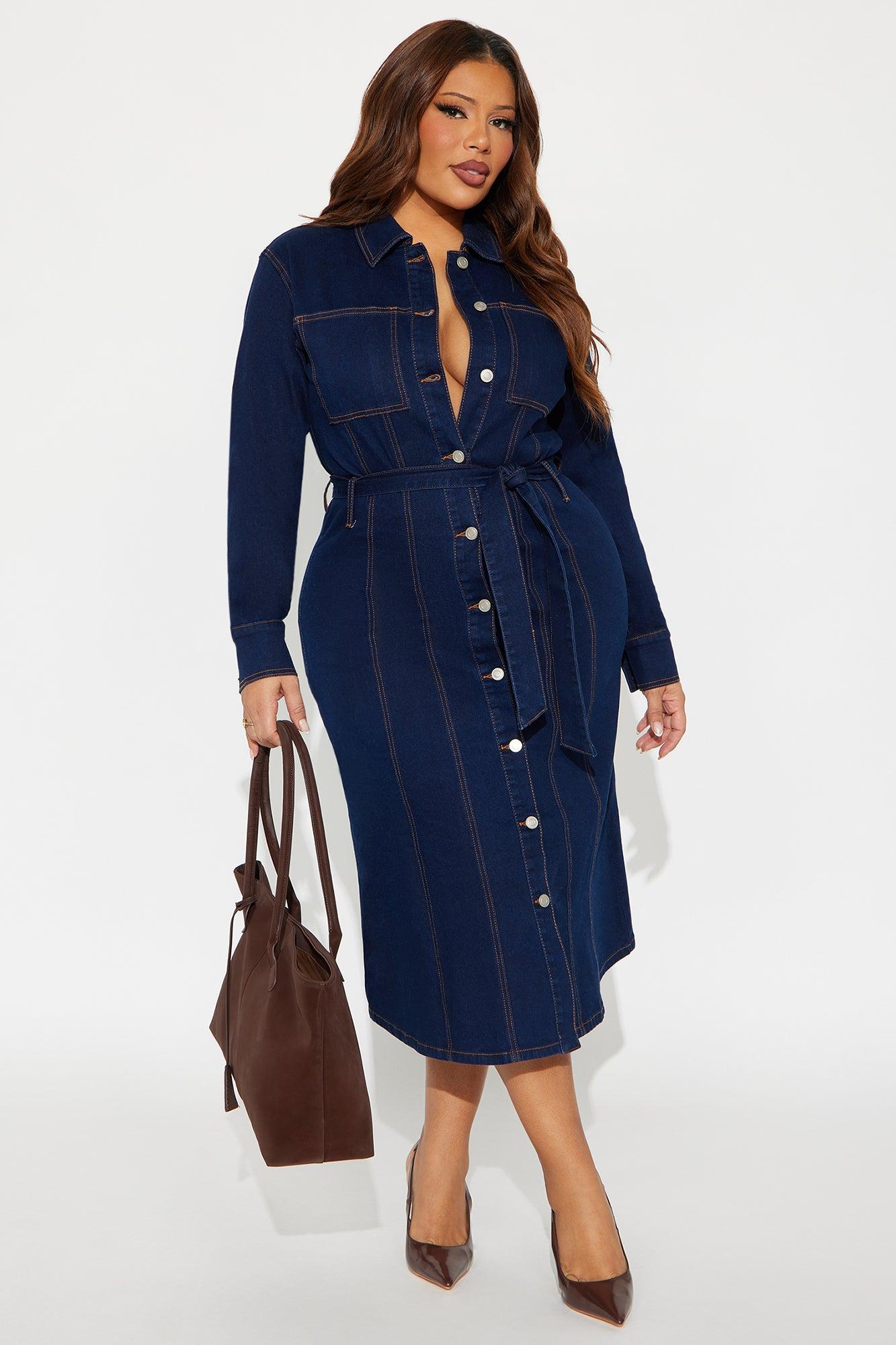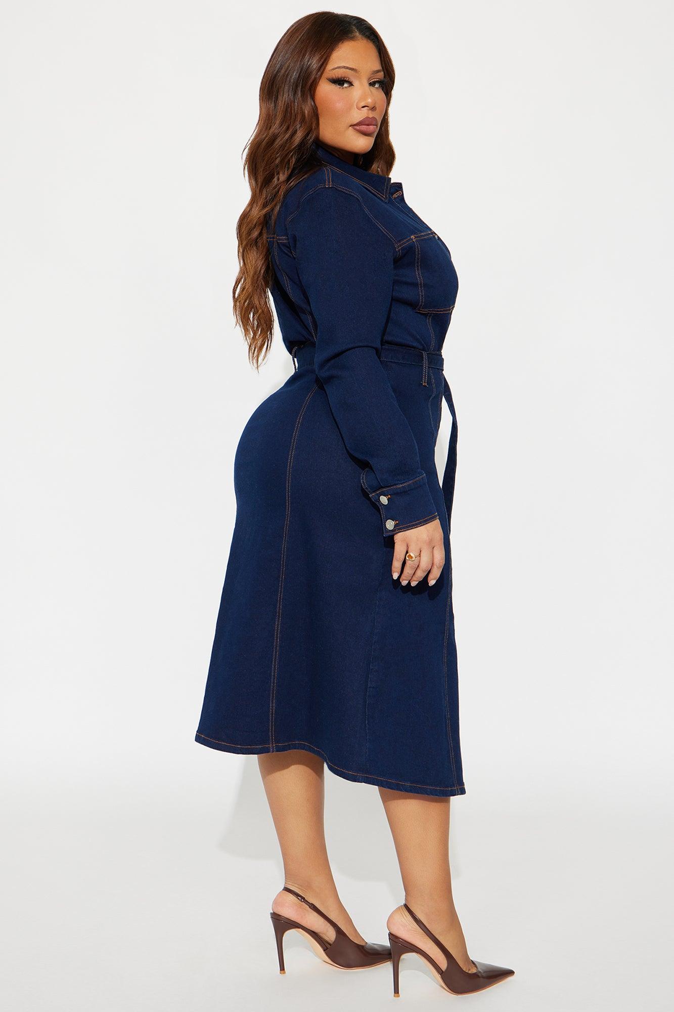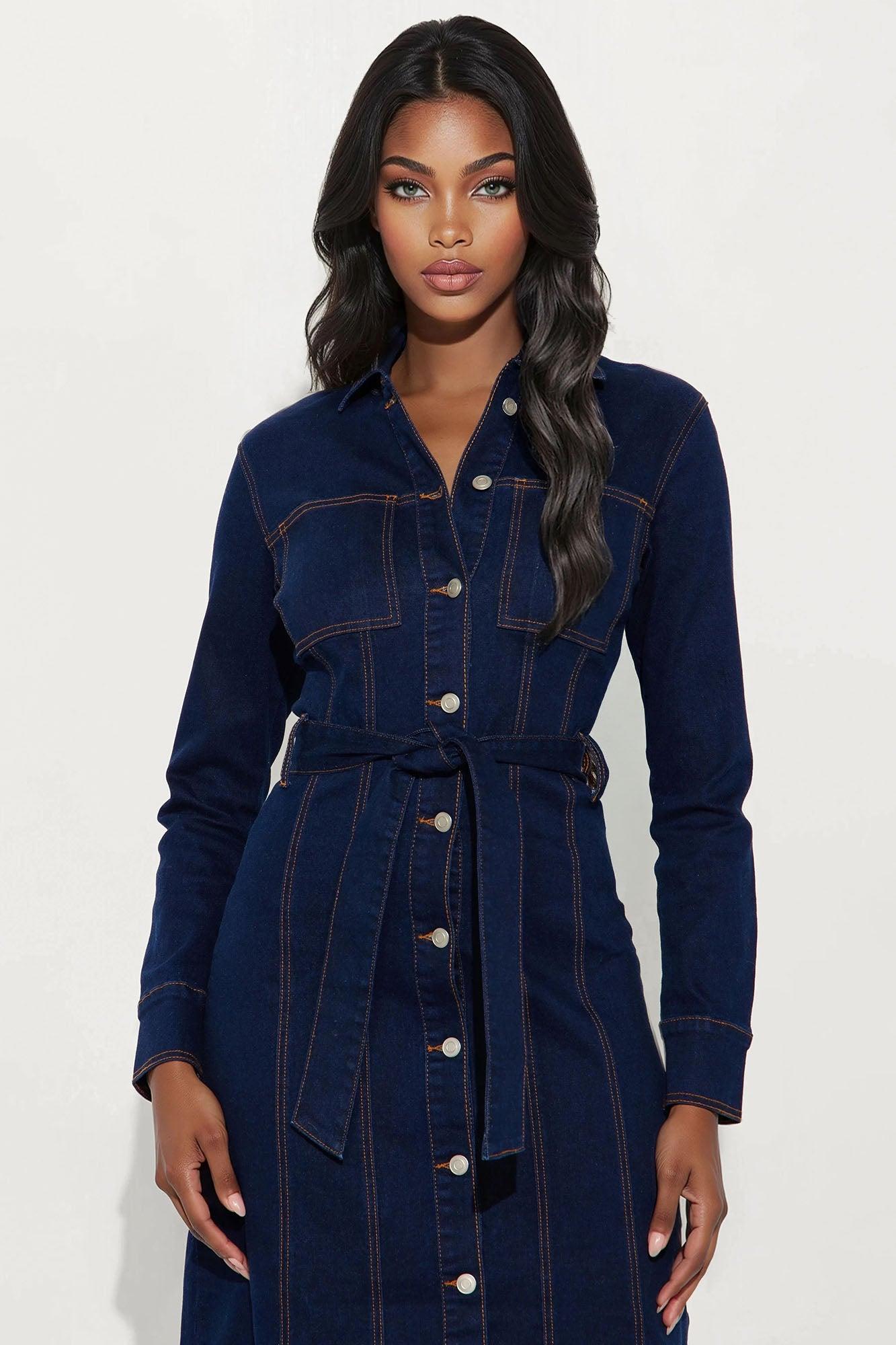 Easy Like Sunday Button Up Denim Midi Dress - Dark Denim Female