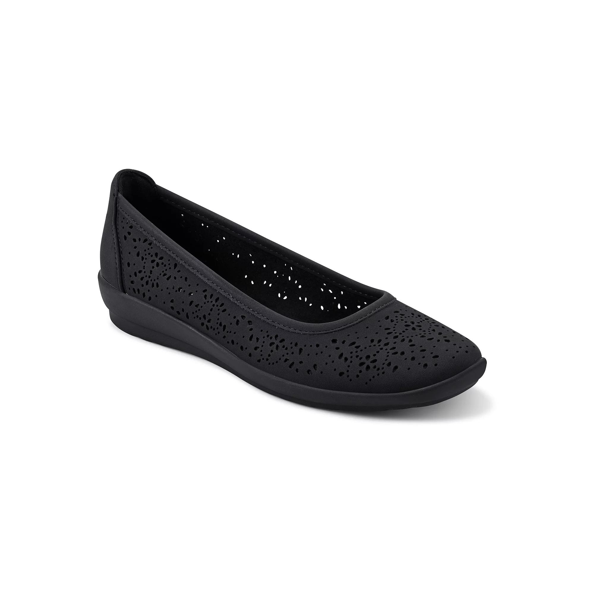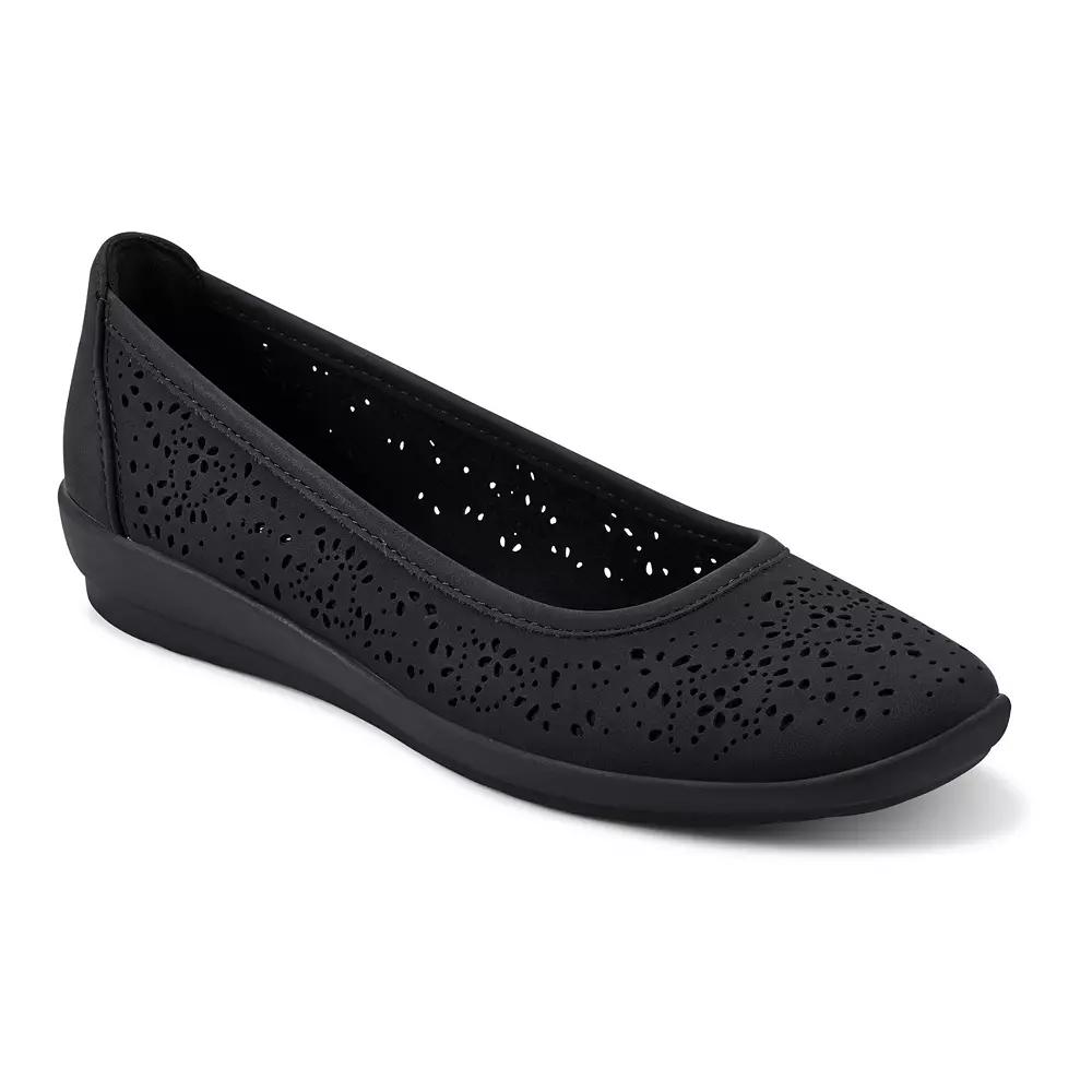 Step into style with these Easy Spirit Alessia women's perforated demi wedge flats. Click this FOOTWEAR GUIDE to find the perfect fit and more! - https://www.kohls.com/feature/shoesizeguide.jsp. FEATURES: Flexible outsole, Cushioned insole, Lightweight design. DETAILS: Polyurethane, polyester, synthetic upper, Polyester, polyurethane lining, Manmade EVA midsole, Ethylene, acetate acide outsole, Round toe, Slip-on, Foam footbed, Flex groove outsole, 1.26-in. heel, Spot clean, Imported. Size: 8.5. Color: Black. Gender: female. Age Group: adult.