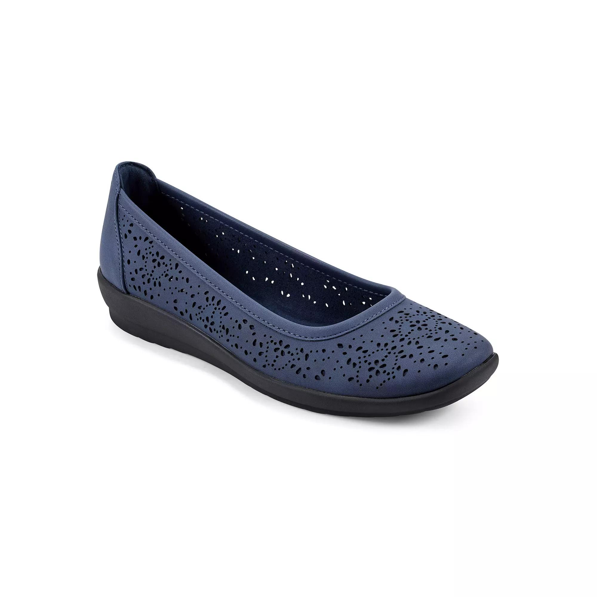 Step into style with these Easy Spirit Alessia women's perforated demi wedge flats. Click this FOOTWEAR GUIDE to find the perfect fit and more! - https://www.kohls.com/feature/shoesizeguide.jsp. FEATURES: Flexible outsole, Cushioned insole, Lightweight design. DETAILS: Polyurethane, polyester, synthetic upper, Polyester, polyurethane lining, Manmade EVA midsole, Ethylene, acetate acide outsole, Round toe, Slip-on, Foam footbed, Flex groove outsole, 1.26-in. heel, Spot clean, Imported. Size: 9.5. Color: Navy. Gender: female. Age Group: adult.