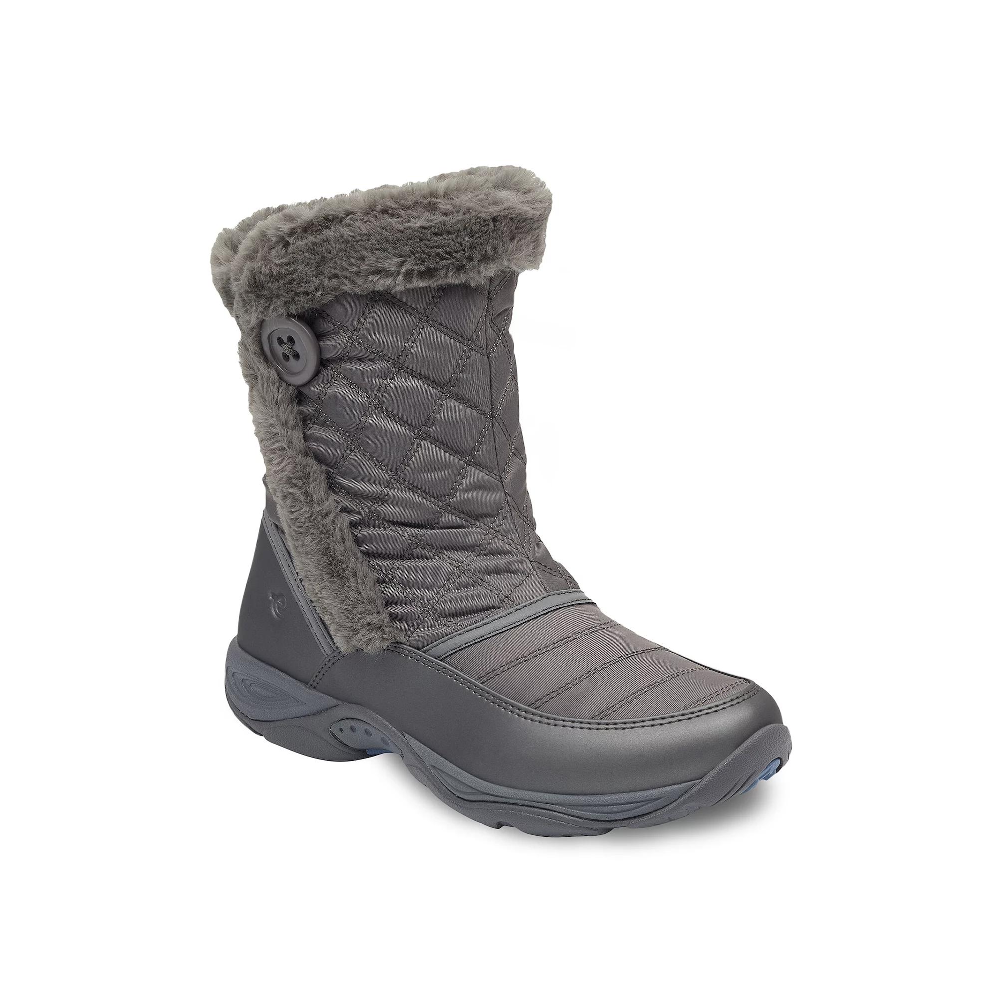 These Easy Spirit Exposure women's quilted boots are perfect for your on-the-go lifestyle. Click this FOOTWEAR GUIDE to find the perfect fit and more! - https://www.kohls.com/feature/shoesizeguide.jsp. SHOE FEATURES: Quilted design with decorative button and faux fur trim, Incredible arch support with a removable footbed, Water repellent for cold weather wear. SHOE CONSTRUCTION: Nylon, faux fur upper, Fabric lining, EVA midsole, Rubber outsole. SHOE DETAILS: Round toe, Zipper closure, EVA footbed, 1.57-in. heel, 6.3-in. shaft, 12.99-in. circumference,. Women's Easy Spirit Shoe Size Chart. Size: 5.5. Color: Pewter. Gender: female. Age Group: adult. Material: TEXTILE.