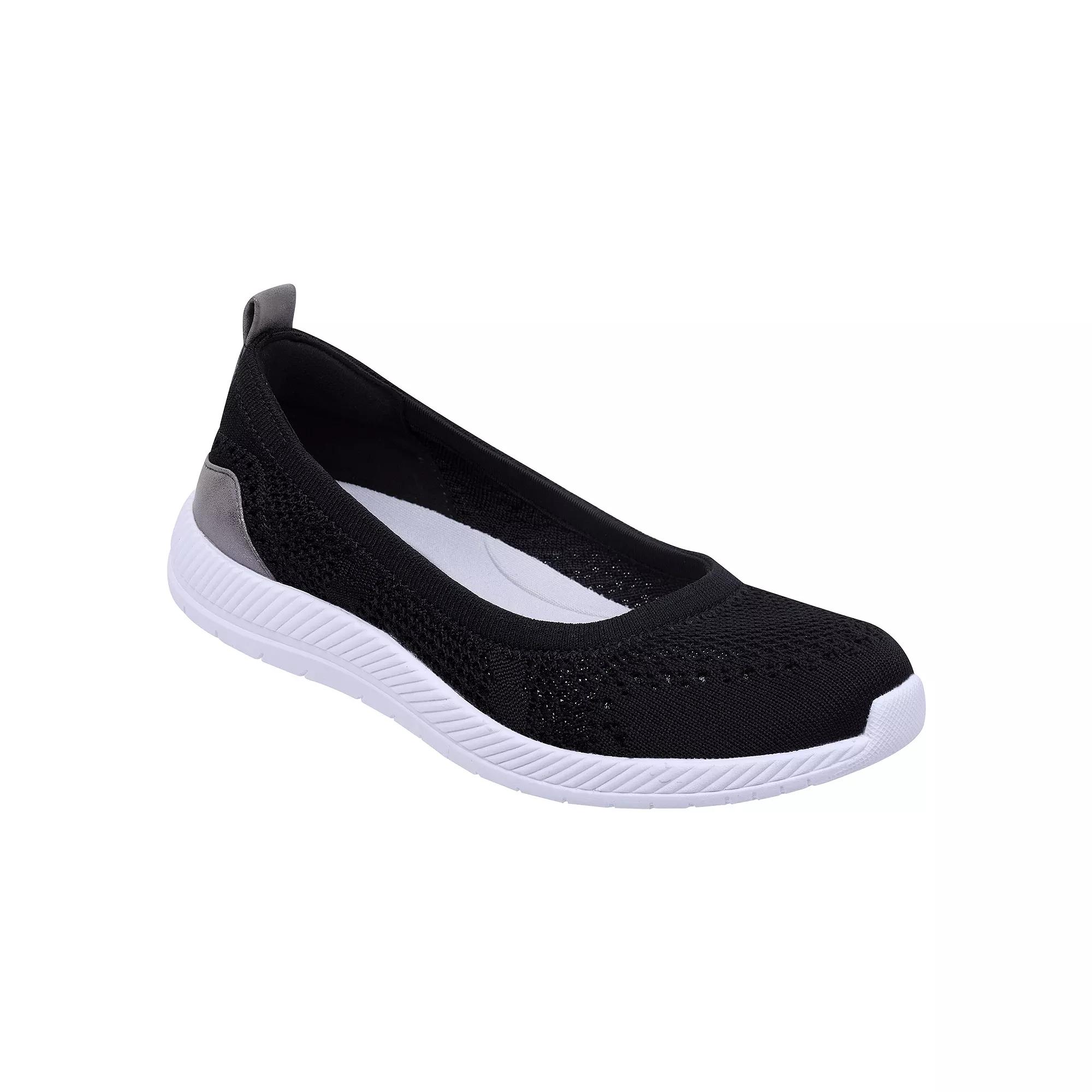 You'll love the comfortable feel and sporty look of these Easy Spirit Glitz skimmer flats. Click this FOOTWEAR GUIDE to find the perfect fit and more! - https://www.kohls.com/feature/shoesizeguide.jsp. SHOE FEATURES: Stretch engineered knit fabric upper, Back pull-tab for easy on and off, Lightweight, flexible style features a multitude of features from incredible arch support to removable footbed for added comfort, EVA molded outsole to ensure superior traction. SHOE CONSTRUCTION: Textile, polyester, synthetic upper, Polyester lining, EVA midsole and outsole. SHOE DETAILS: Round toe, Slip-on, EVA footbed,. Women's Easy Spirit Shoe Size Chart. Size: 9. Color: Black. Gender: female. Age Group: adult.