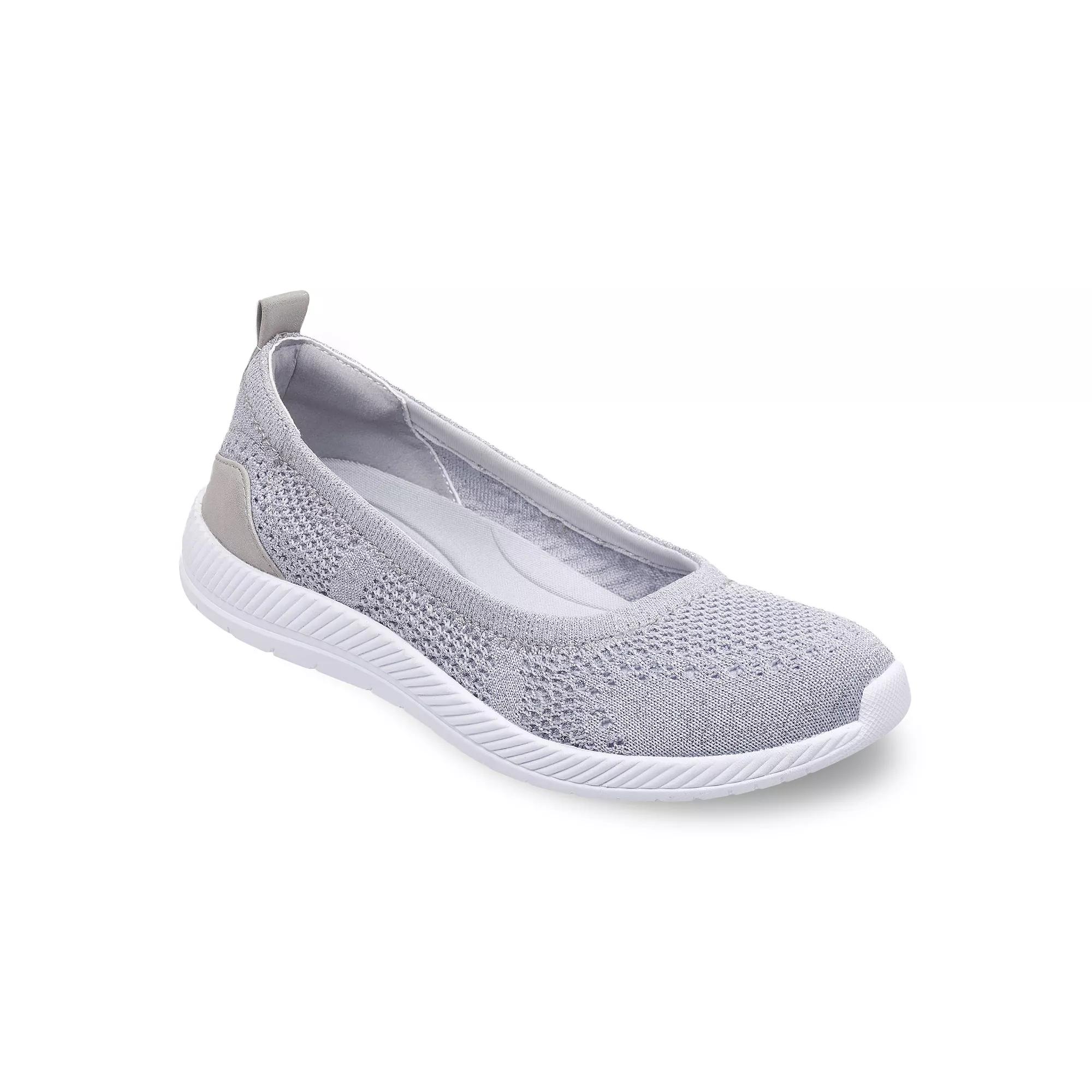 You'll love the comfortable feel and sporty look of these Easy Spirit Glitz skimmer flats. Click this FOOTWEAR GUIDE to find the perfect fit and more! - https://www.kohls.com/feature/shoesizeguide.jsp. SHOE FEATURES: Stretch engineered knit fabric upper, Back pull-tab for easy on and off, Lightweight, flexible style features a multitude of features from incredible arch support to removable footbed for added comfort, EVA molded outsole to ensure superior traction. SHOE CONSTRUCTION: Textile, polyester, synthetic upper, Polyester lining, EVA midsole and outsole. SHOE DETAILS: Round toe, Slip-on, EVA footbed,. Women's Easy Spirit Shoe Size Chart. Size: 7.5 XW. Color: Silver. Gender: female. Age Group: adult. Material: OTHER MATERIAL.