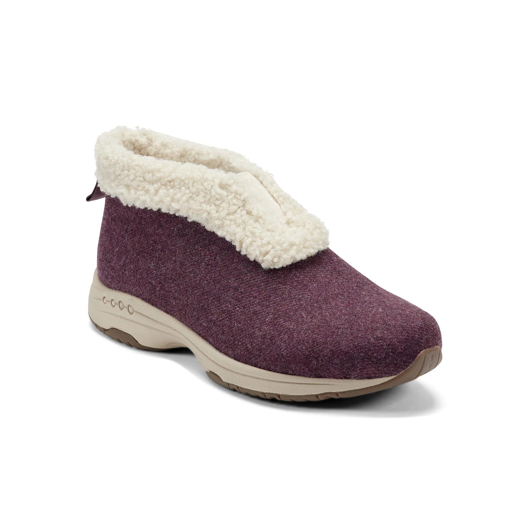 These Easy Spirit Treepose women's faux-fur slipper boots are cozy and perfect for indoor or outdoor use. Click this FOOTWEAR GUIDE to find the perfect fit and more! - https://www.kohls.com/feature/shoesizeguide.jsp. SHOE FEATURES: Wool-like texture upper, Faux-fur collar and lining is extra warm for the colder months, Stretch elastic on the upper for easy on and off. SHOE CONSTRUCTION: Textile, faux fur upper, Faux fur, fabric lining, EVA midsole, Rubber outsole. SHOE DETAILS: Round toe, Pull-on, EVA footbed, 3.31-in. shaft, 11.42-in. circumference,. Women's Easy Spirit Shoe Size Chart. Size: 6.5 Wide. Color: Plum Flannel. Gender: female. Age Group: adult. Material: OTHER MATERIAL.