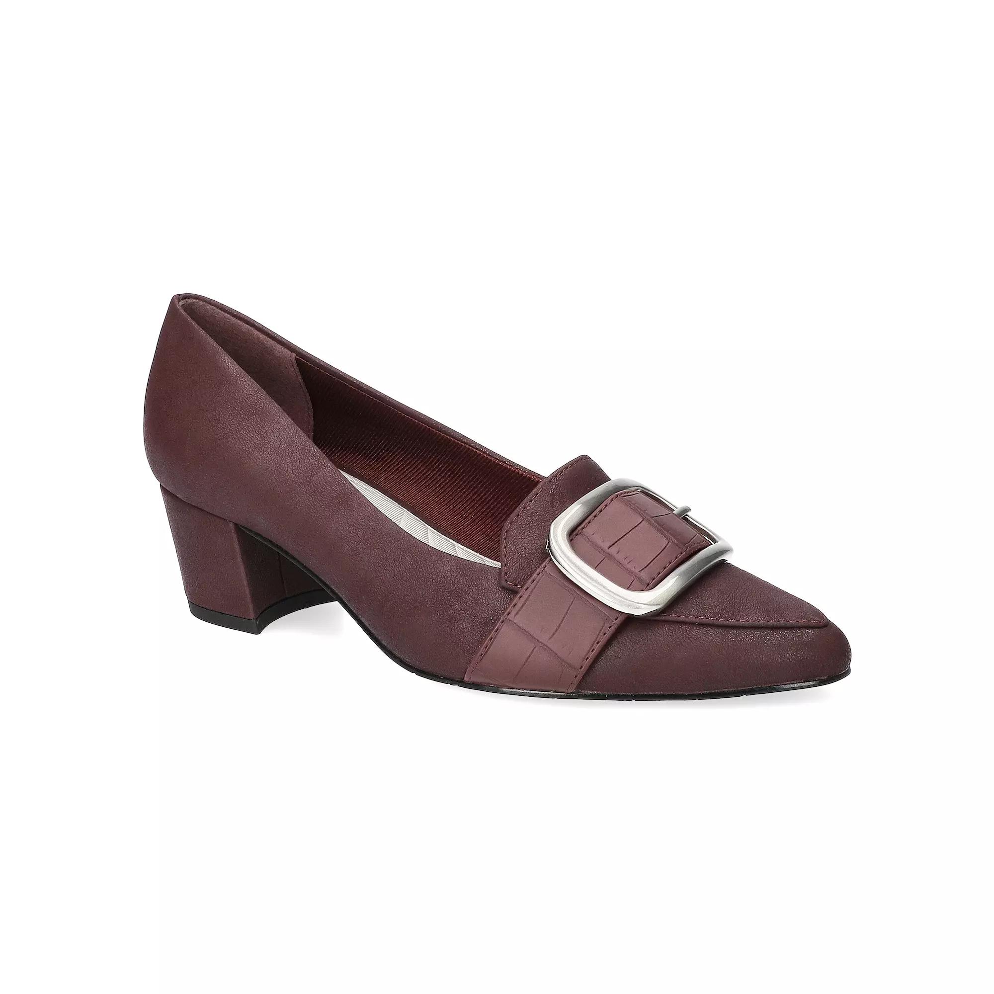 Redefine your style with the Aster pump from Easy Street, featuring a chic square buckle ornament and an eye-catching croco overlay that brings a modern twist to your wardrobe. With its underslung block heel and cushioned insole, this sophisticated almond toe design ensures that you not only look fabulous but feel comfortable all day long.Click this FOOTWEAR GUIDE to find the perfect fit and more!Redefine your style with the Aster pump from Easy Street, featuring a chic square buckle ornament and an eye-catching croco overlay that brings a modern twist to your wardrobe. With its underslung block heel and cushioned insole, this sophisticated almond toe design ensures that you not only look fabulous but feel comfortable all day long.Click this FOOTWEAR GUIDE to find the perfect fit and more!FEATURES Contemporary square buckle ornament and new overlay croco treatment Designed with a on-trend underslung block heel, sophisticated almond toe Easy Flex outsole and generously padded insole give you all the fashion and comfort you need to take on your dayDETAILS Synthetic upper Fabric lining Rubber outsole Almond toe Slip-on Foam footbed 1.75-in. heel height Spot clean Imported Size: 6 Wide. Color: Burgundy Matte. Gender: female. Age Group: adult.
