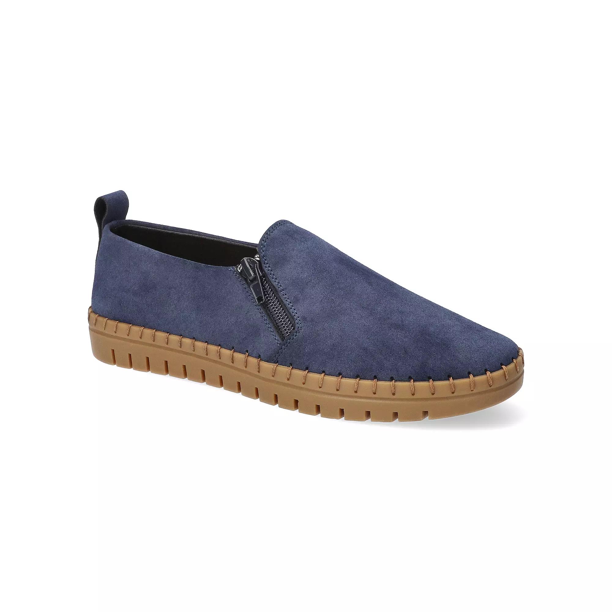 Discover effortless style with Easy Street flats that blend comfort and versatility in every step. Featuring a flexible outsole and an ultra-light footbed, these chic shoes effortlessly adapt to your daily adventures, while the side zipper and stretch-for-fit design make them perfect for dressing up or down. Click this FOOTWEAR GUIDE to find the perfect fit and more! - https://www.kohls.com/feature/shoesizeguide.jsp. FEATURES: Ultra-flexible and lightweight outsole that moves easily in every direction, Classic upper includes a side zipper and stretch-for-fit features, Enhanced with an ultra-light Easy Motion footbed, ensuring you walk in comfort every time you wear them. DETAILS: Synthetic upper, EVA lining, Rubber outsole, Round toe, Slip-on with zipper closure, Foam footbed, 1-in. heel height, Spot clean, Imported. Size: 8 XW. Color: Navy. Gender: female. Age Group: adult.