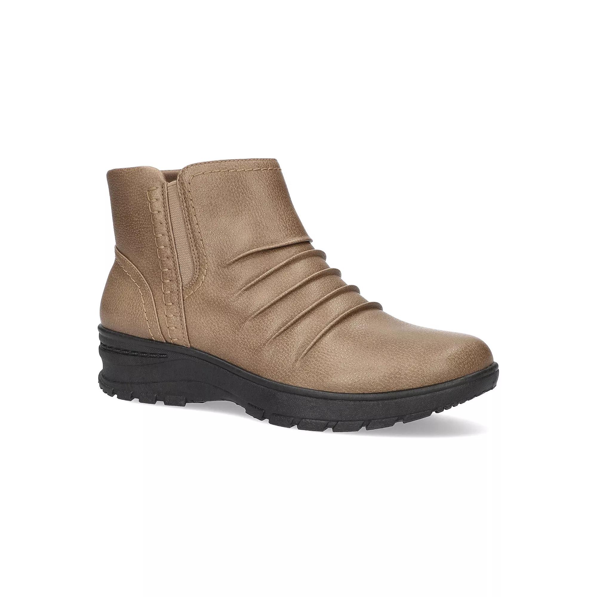 The Autumn from Easy Works by Easy Street is a stylish ruched comfort bootie with stitch detailing that will meet all your fashion needs. Enhanced with the Easy Motion Pro Comfort system, the removable antimicrobial contoured insole is designed to provide all-day comfort and support. Featuring stretch-for-fit comfort and an on-trend mini lug non-marking slip-resistant outsole, this style will have you pairing with all your favorite casual outfits. Click this FOOTWEAR GUIDE to find the perfect fit and more! - https://www.kohls.com/feature/shoesizeguide.jsp. FEATURES: Removable insole, Ankle high. DETAILS: Synthetic upper, Fabric lining, Manmade outsole, Round toe, Zipper closure, Foam footbed, Slip-resistant outsole, Heel height: 1.25 in., Boot shaft height: 4 in., Boot shaft circumference: 12.25 in, Spot clean, Imported. Size: 7.5. Color: Taupe. Gender: female. Age Group: adult.