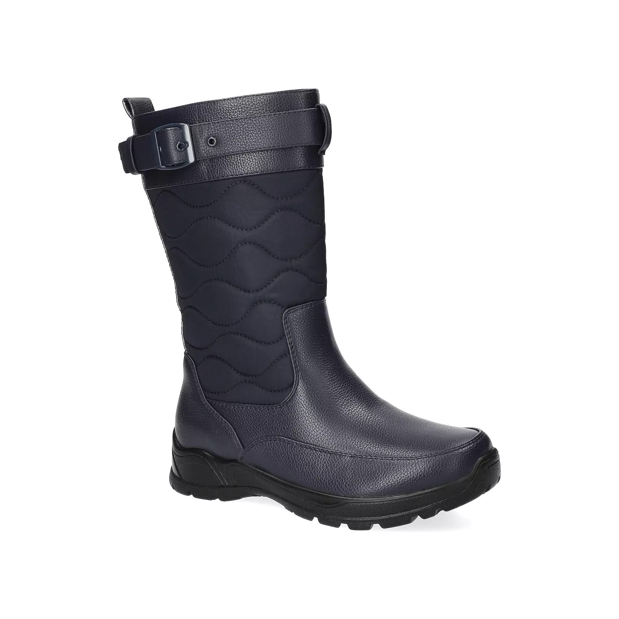 Experience the perfect blend of rugged functionality and chic style with these women's boots from Easy Street. Designed to keep your feet warm and dry during chilly adventures, they feature a quilted exterior, a comfortable faux fur lining, and an adjustable buckle for a trendy finish, making them an essential addition to your winter wardrobe. Click this FOOTWEAR GUIDE to find the perfect fit and more! - https://www.kohls.com/feature/shoesizeguide.jsp. FEATURES: Rugged and stylish design for cozy wear on frosty mornings, Lightweight and flexible outsole with deep channels for excellent traction, Waterproof inner shell for reliable protection against moisture, Adjustable buckle at the top for a fashionable touch and enhanced fit, Padded insole for heel-to-toe support and comfort, Soft faux fur lining for added warmth, Inside zipper for easy on and off. DETAILS: Zipper closure, Round toe, Heel height: 1.25", Imported. FIT & SIZE: Mid-calf boot shaft, 10 inches boot shaft height, 15.75 inches boot shaft circumference. MATERIAL & CARE: Synthetic upper, Fabric lining, Manmade outsole, Foam footbed, Spot clean. Size: 9. Color: Navy. Gender: female. Age Group: adult.