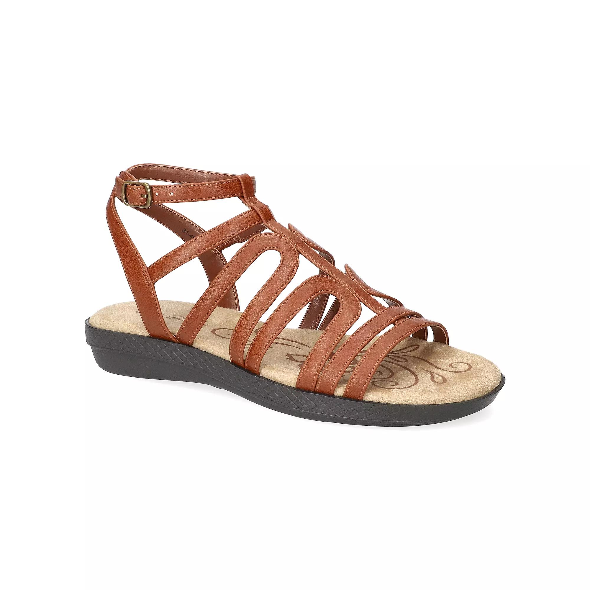 These shoes were made for strutting your stuff! Show off your unique style with these women's sandals from Easy Street. Click this FOOTWEAR GUIDE to find the perfect fit and more! - https://www.kohls.com/feature/shoesizeguide.jsp. FEATURES: Designed with a padded insole for enhanced comfort, the adjustable buckle allows for a personalized fit. DETAILS: Synthetic upper, Fabric lining, Manmade outsole, Open toe, Buckle closure, Foam footbed, 1-in. heel height, Spot clean, Imported. Size: 8. Color: Cognac. Gender: female. Age Group: adult.