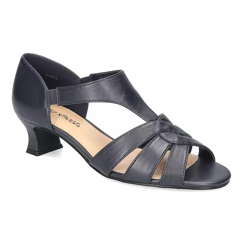 The Essie by Easy Street is a contemporary fresh dress sandal that offers uncompromising comfort with stretch to fit upper. Featuring a sophisticated upper and low fashionable dress heel, it allows you to take your look from day to night effortlessly. All designed on a lightweight outsole provides comfort in every step.