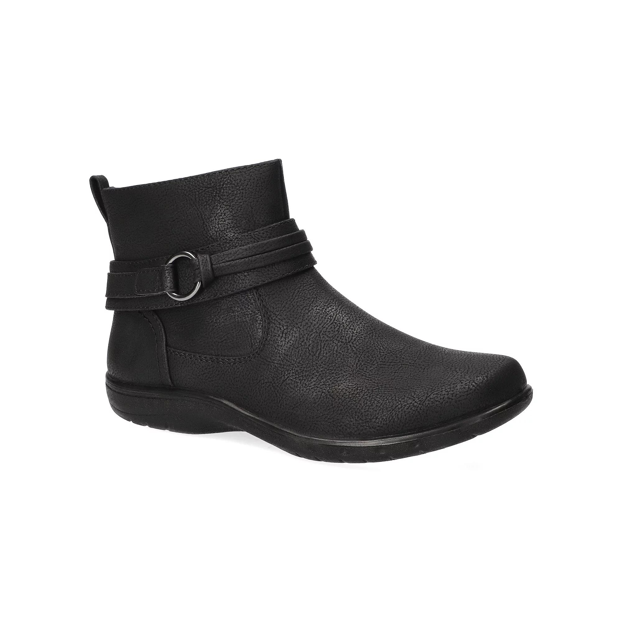 Experience the perfect blend of comfort and style with Easy Street’s ankle boots, designed to be your go-to footwear for any occasion. Featuring a chic decorative strap and ring detail, these boots offer a lightweight and flexible feel, making them ideal for all-day wear with effortless ease. Click this FOOTWEAR GUIDE to find the perfect fit and more! - https://www.kohls.com/feature/shoesizeguide.jsp. FEATURES: Decorative strap and ring detail for added style, Comfort Wave unit outsole for lightweight flexibility, Removable insole for all-day comfort, Inside zipper for easy on/off access. DETAILS: Zipper closure, Round toe, Heel height: 1.5", Imported. FIT & SIZE: Ankle boot shaft detail, 4.25 inch boot shaft height, 12 inch boot shaft circumference. MATERIAL & CARE: Synthetic upper, Manmade outsole, Fabric lining, Foam footbed, Spot clean. Size: 7.5. Color: Black Matte. Gender: female. Age Group: adult.
