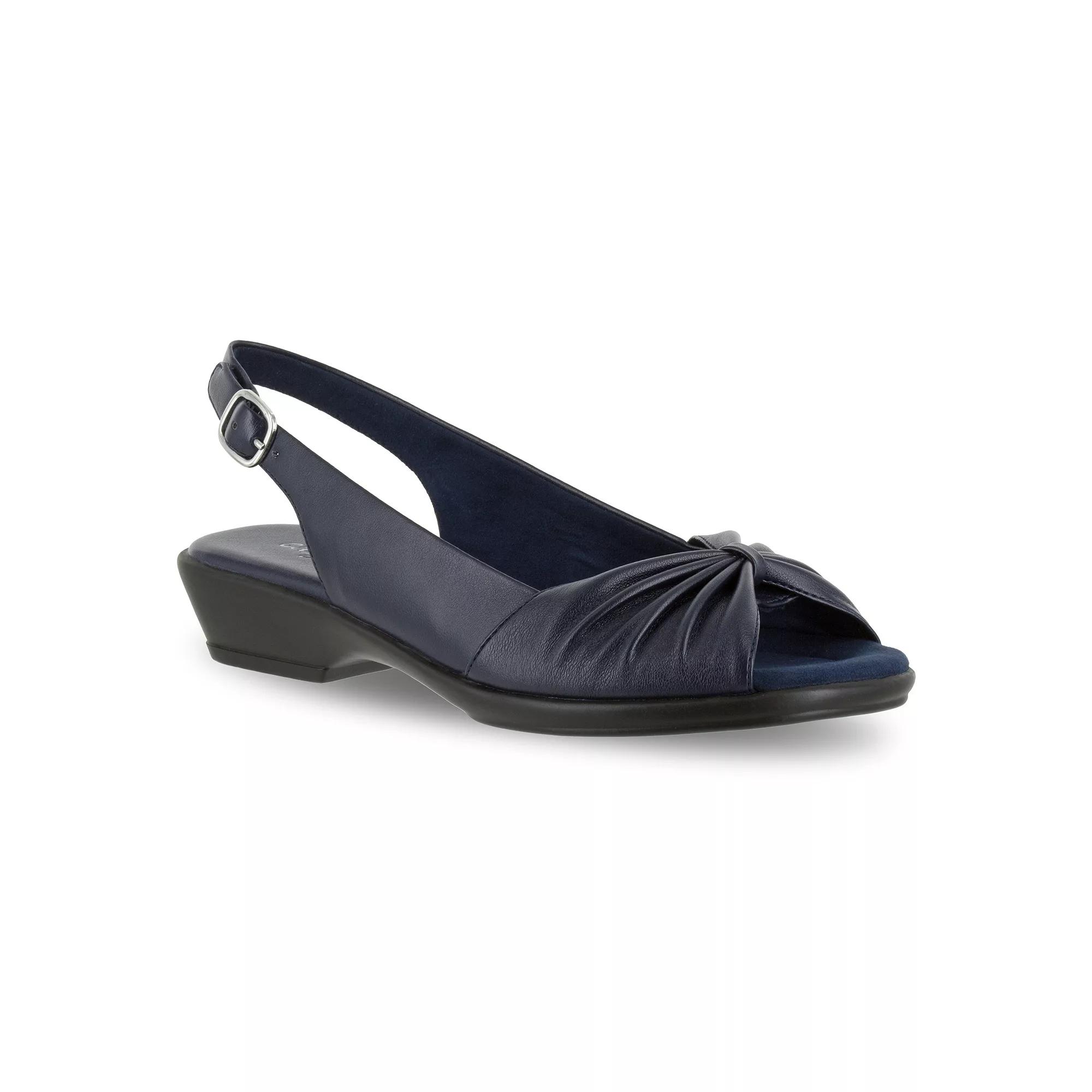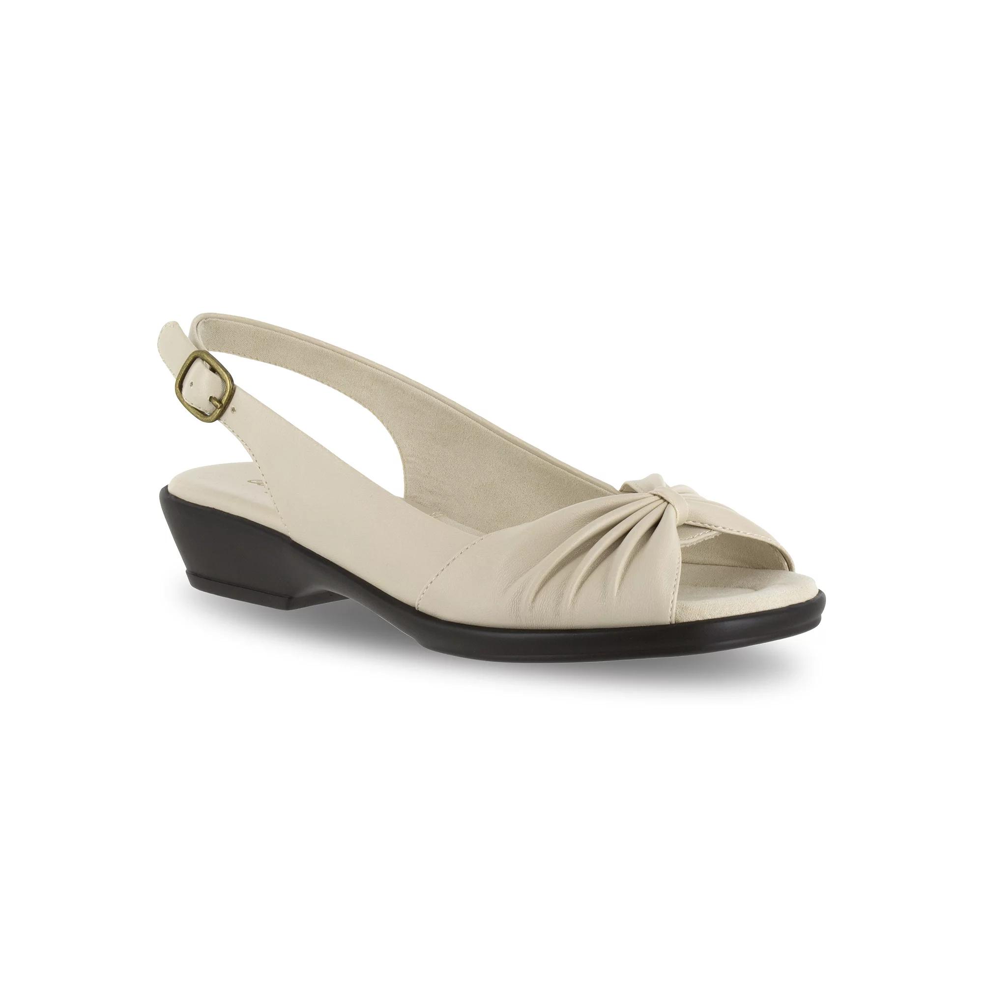 Ruching details create a sweet bow effect on Easy Streets Fantasia sandals with a modest heel and slingback design for stylish comfort.