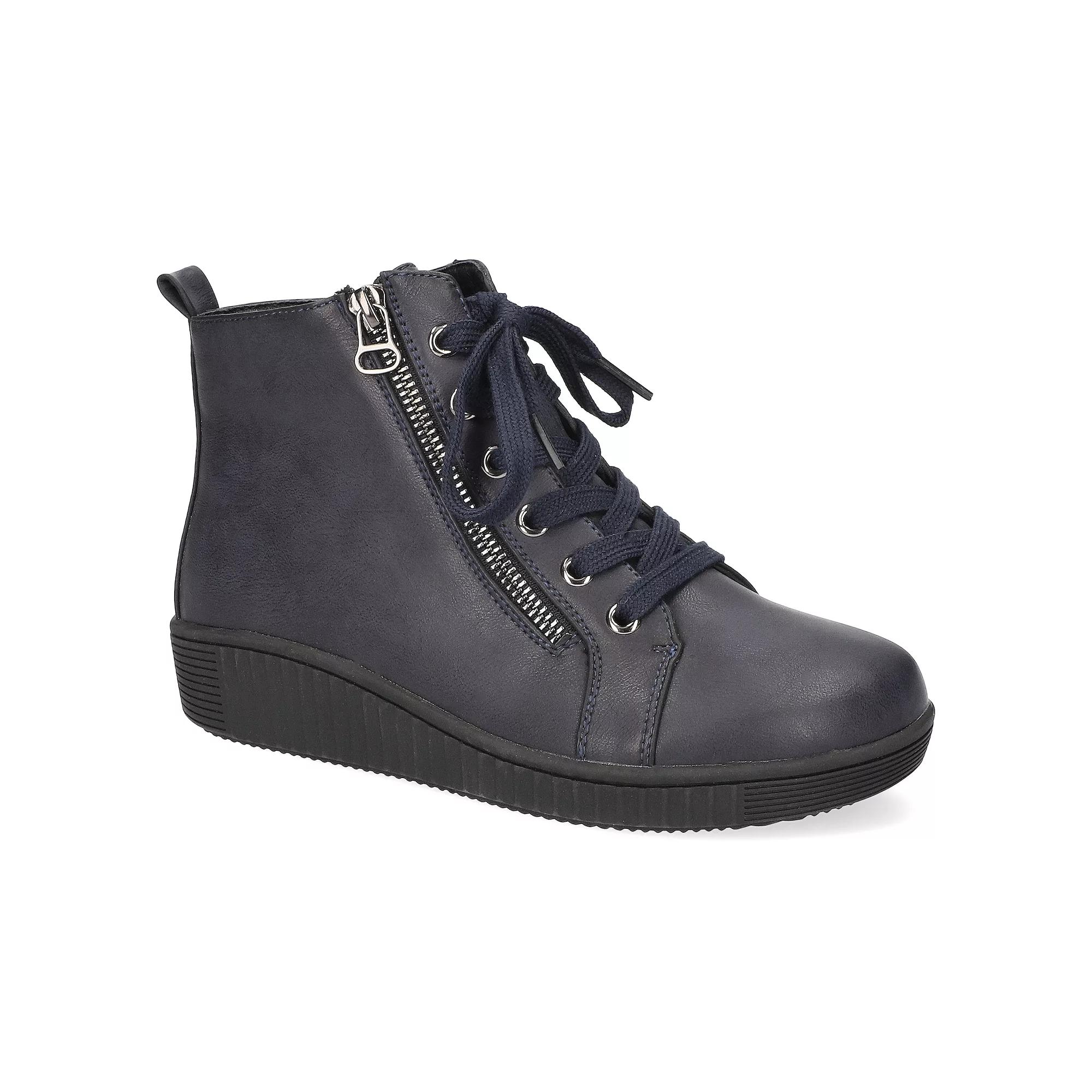 Step into effortless style and comfort with these ankle boots that perfectly blend fashion and function. Featuring dual zippers and chic lace-up detailing, they promise to keep you looking trendy while the slip-resistant outsole and cushy antimicrobial insole ensure you'll glide through your day with ease and comfort. Click this FOOTWEAR GUIDE to find the perfect fit and more! - https://www.kohls.com/feature/shoesizeguide.jsp. FEATURES: Stylish bootie design with inside and outside zippers, Lace-up detailing for a secure fit, Super-flexible and comfortable rubber outsole, Non-marking and slip-resistant outsole, Enhanced with Easy Motion Pro Comfort system, Removable antimicrobial contoured insole for all-day comfort, Built-in arch support for added comfort. FIT & SIZE: Ankle boot shaft, Boot shaft height: 5.5-in., Boot shaft circumference: 8.5-in. DETAILS: Zipper & lace-up closure, Slip-resistant outsole, Removable insole, Round toe, Platform height: 0.5-in., Heel height: 1.5-in., Imported. MATERIAL & CARE: Synthetic upper, Rubber outsole, Manmade lining, Foam footbed, Spot clean. Size: 7. Color: Navy Burnished. Gender: female. Age Group: adult.