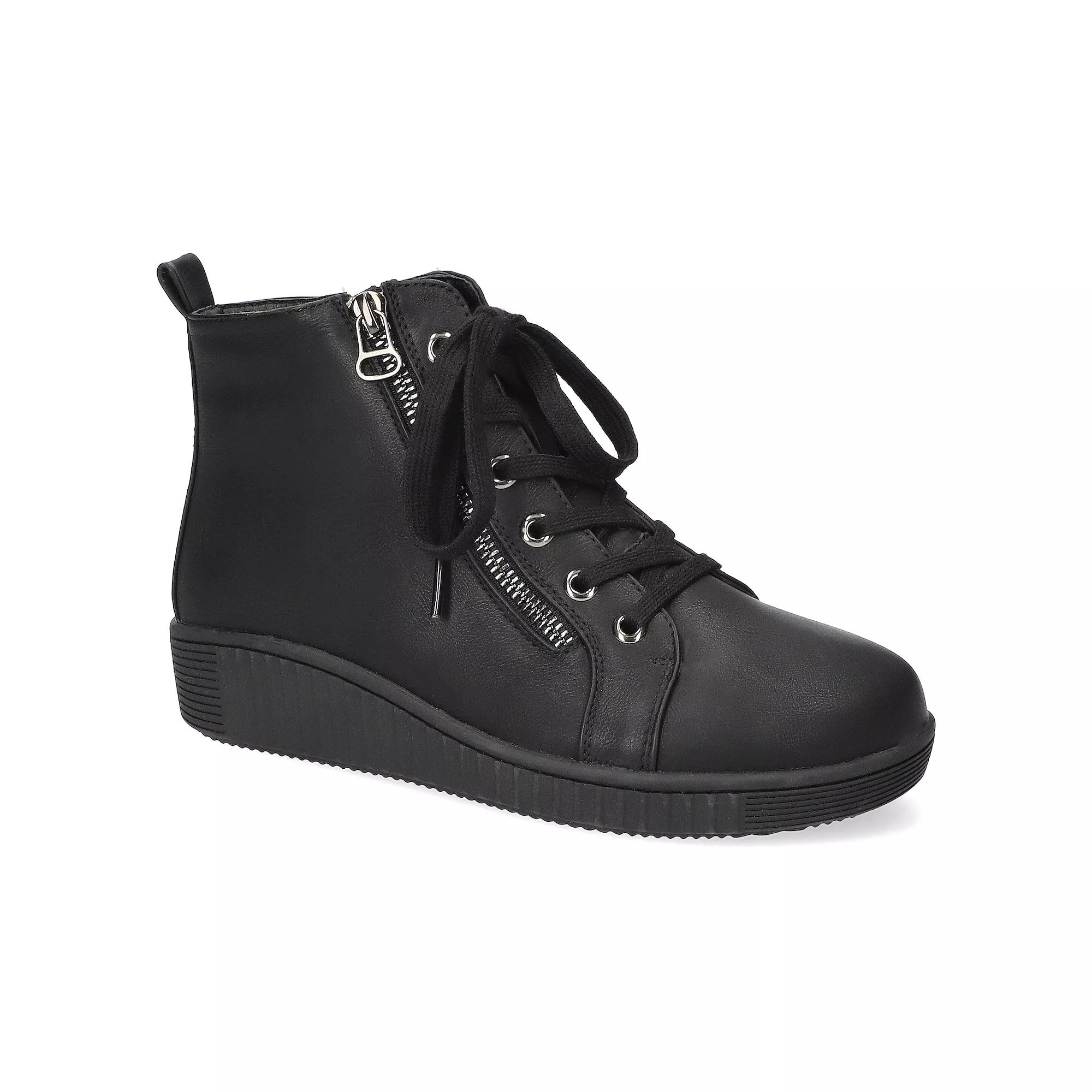 Step into effortless style and comfort with these ankle boots that perfectly blend fashion and function. Featuring dual zippers and chic lace-up detailing, they promise to keep you looking trendy while the slip-resistant outsole and cushy antimicrobial insole ensure you'll glide through your day with ease and comfort. Click this FOOTWEAR GUIDE to find the perfect fit and more! - https://www.kohls.com/feature/shoesizeguide.jsp. FEATURES: Stylish bootie design with inside and outside zippers, Lace-up detailing for a secure fit, Super-flexible and comfortable rubber outsole, Non-marking and slip-resistant outsole, Enhanced with Easy Motion Pro Comfort system, Removable antimicrobial contoured insole for all-day comfort, Built-in arch support for added comfort. FIT & SIZE: Ankle boot shaft, Boot shaft height: 5.5-in., Boot shaft circumference: 8.5-in. DETAILS: Zipper & lace-up closure, Slip-resistant outsole, Removable insole, Round toe, Platform height: 0.5-in., Heel height: 1.5-in., Imported. MATERIAL & CARE: Synthetic upper, Rubber outsole, Manmade lining, Foam footbed, Spot clean. Size: 7.5. Color: Black Burnished. Gender: female. Age Group: adult.