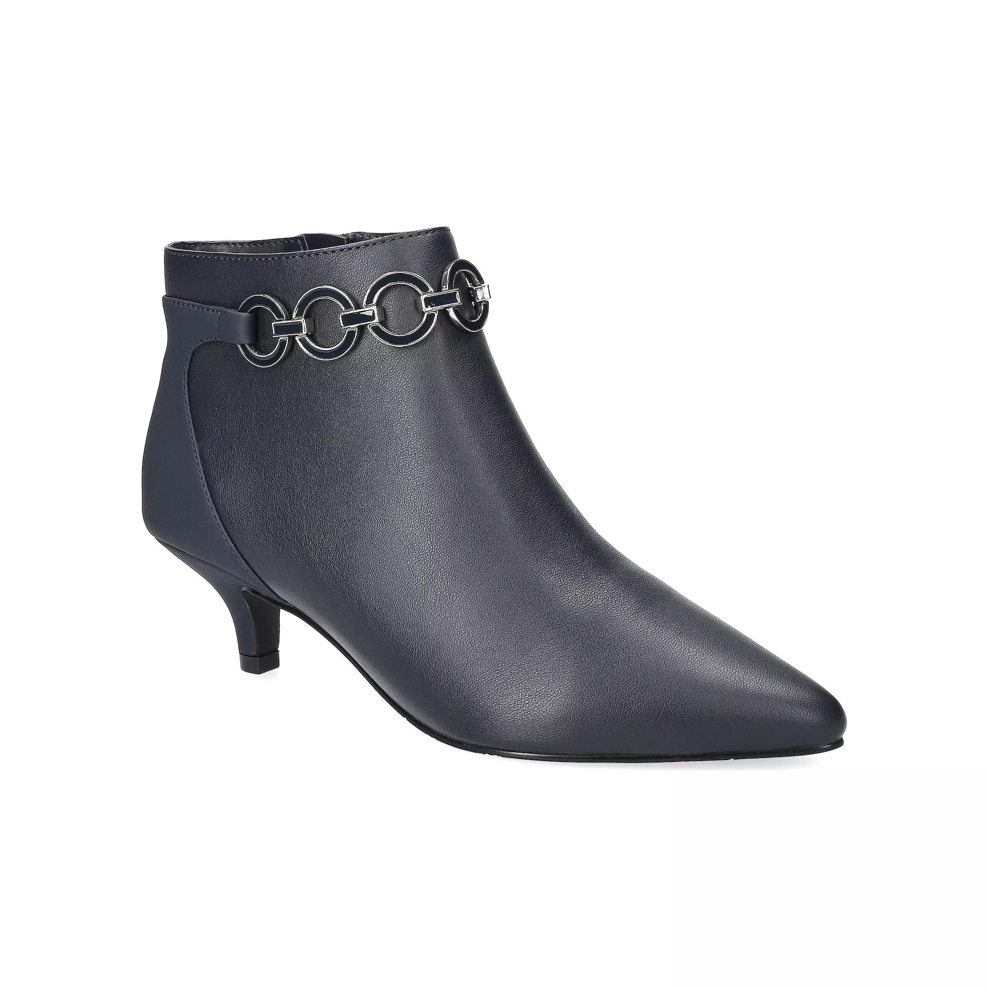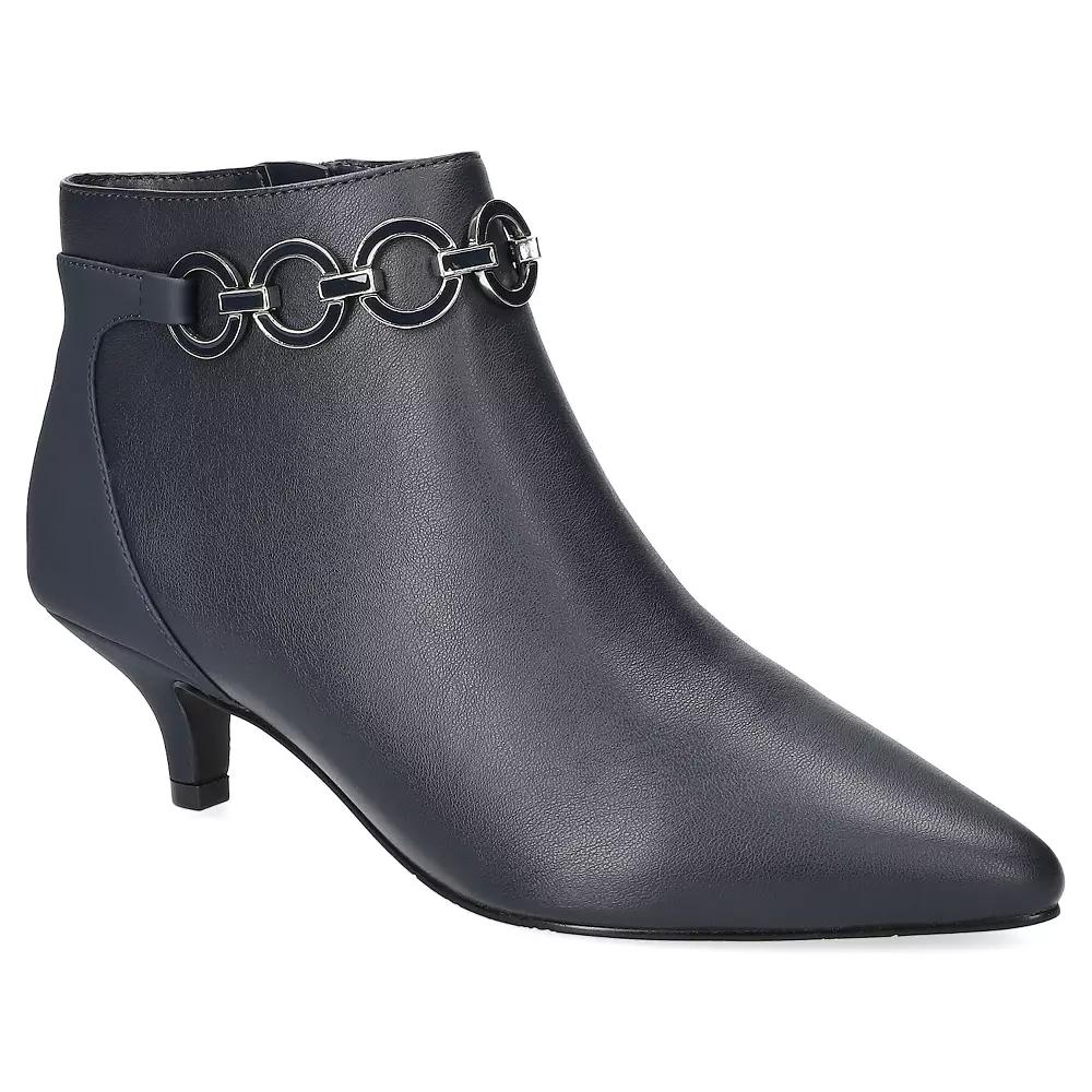 Discover a perfect blend of elegance and comfort with these stunning ankle boots from Easy Street. Featuring a chic pointed toe and stylish kitten heel, the Jinx booties are designed for all-day wear, combining a padded insole and an eye-catching ornament detail that makes any outfit pop. Slip them on easily for a refined look that transitions effortlessly from day to evening. Click this FOOTWEAR GUIDE to find the perfect fit and more! - https://www.kohls.com/feature/shoesizeguide.jsp. FEATURES: Refined and versatile design for style and sophistication, Fashionable pointed toe and kitten heel for a refined touch, Unique ornament detail for added visual interest, Padded heel-to-toe comfort insole for all-day wear, Inside zipper for easy on/off access, Ankle boot shaft detail. DETAILS: Pointed toe, Zipper closure, Heel height: 1.75 in., Imported. FIT & SIZE: Shaft circumference: 11.25 in., Shaft height: 4.25 in. MATERIAL & CARE: Synthetic upper, Foam footbed, Manmade lining, Rubber outsole, Spot clean. Size: 6 Wide. Color: Navy. Gender: female. Age Group: adult.