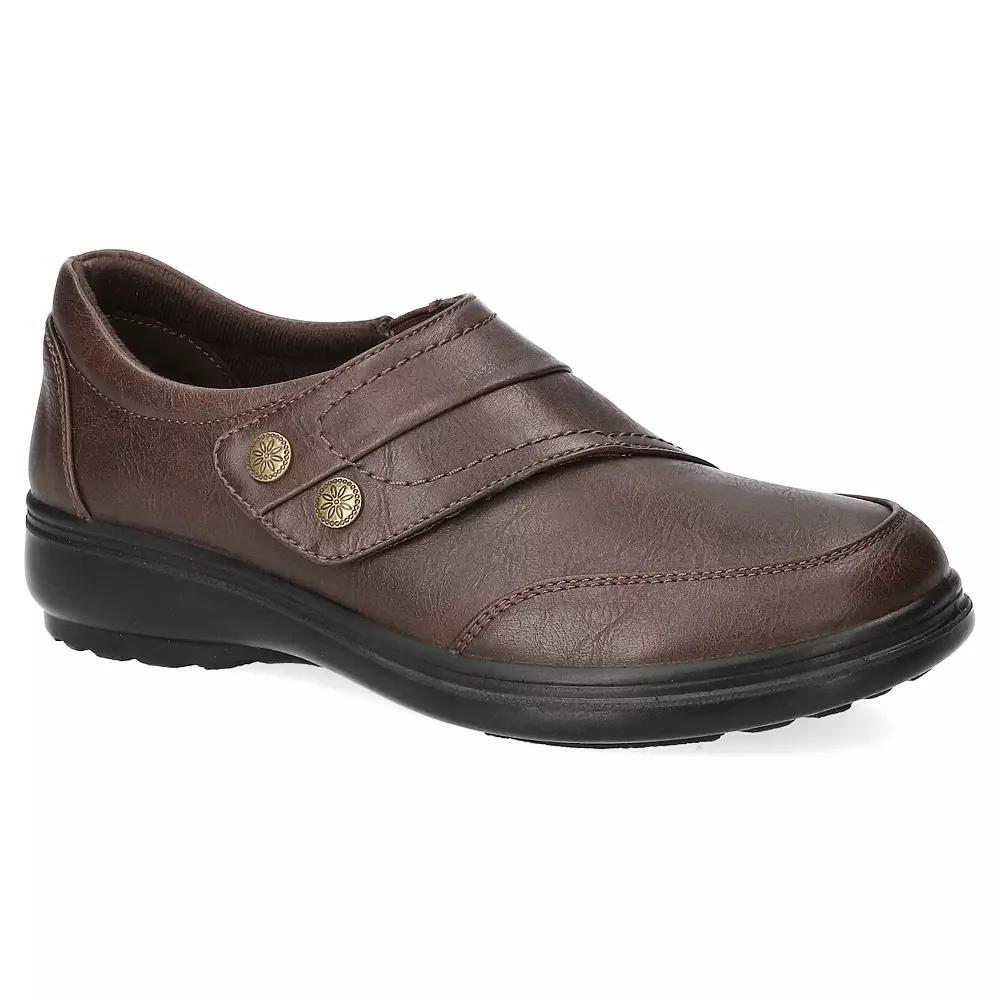 Discover the perfect blend of style and comfort with Easy Street's delightful slip-on flats. The chic design features a hook-and-loop overlay vamp and ornamental detailing, making them an easy choice for any casual outing while offering all-day support with their innovative Comfort Wave construction and ultra-light removable insole. Click this FOOTWEAR GUIDE to find the perfect fit and more! - https://www.kohls.com/feature/shoesizeguide.jsp. FEATURES: Hook-and-loop overlay vamp for easy wear, Ornamental detailing for added versatility, Comfort Wave construction for enhanced support, Ultra-light Easy Motion removable insole for all-day comfort. DETAILS: Round toe, Hook-and-loop tape closure, Heel height: 0.75 in., Imported. MATERIAL & CARE: Synthetic upper, Foam footbed, Fabric lining, Manmade outsole, Spot clean care. Size: 6 XW. Color: Brown. Gender: female. Age Group: adult.