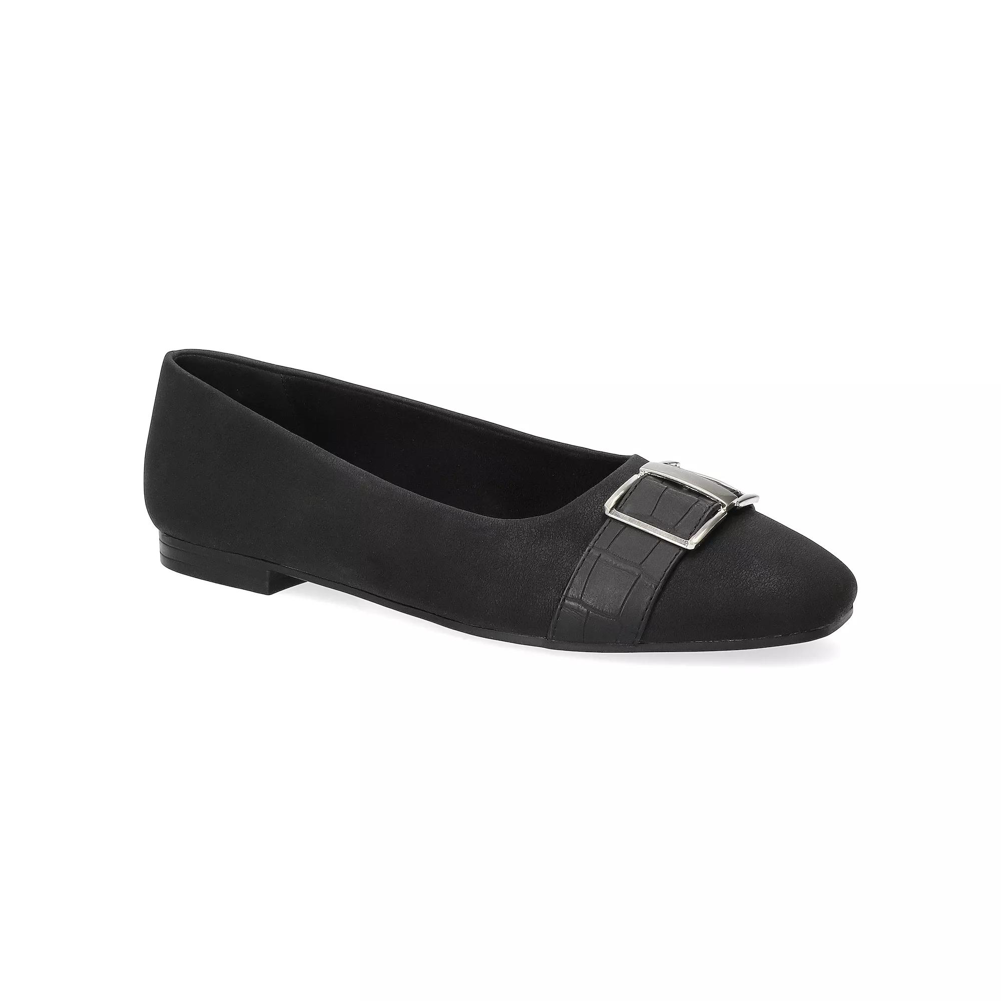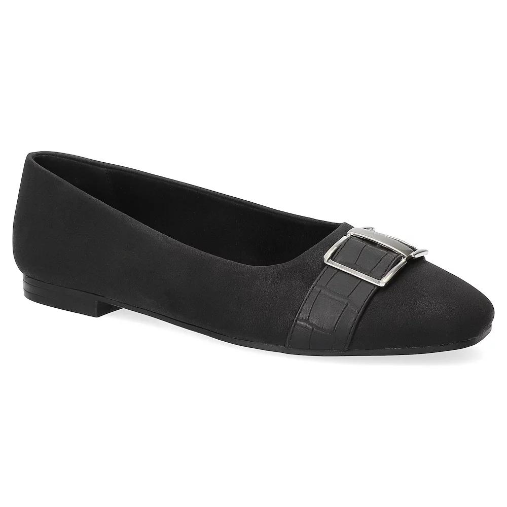 Discover chic comfort with these stylish square-toe flats, perfect for complementing your everyday wardrobe. Featuring a trendy design and a plush pillow foam footbed, these flats from Easy Street ensure all-day comfort while keeping your look effortlessly fashionable. Click this FOOTWEAR GUIDE to find the perfect fit and more! - https://www.kohls.com/feature/shoesizeguide.jsp. FEATURES: Trendy square toe design for a modern look, Pillow foam footbed and Easy Flex outsole for all-day comfort. DETAILS: Slip-on closure, Square toe, Heel height: 0.5-in., Imported. MATERIAL & CARE: Synthetic upper, Fabric lining, Rubber outsole, Foam footbed, Spot clean. Size: 8. Color: Black Matte Croco. Gender: female. Age Group: adult.