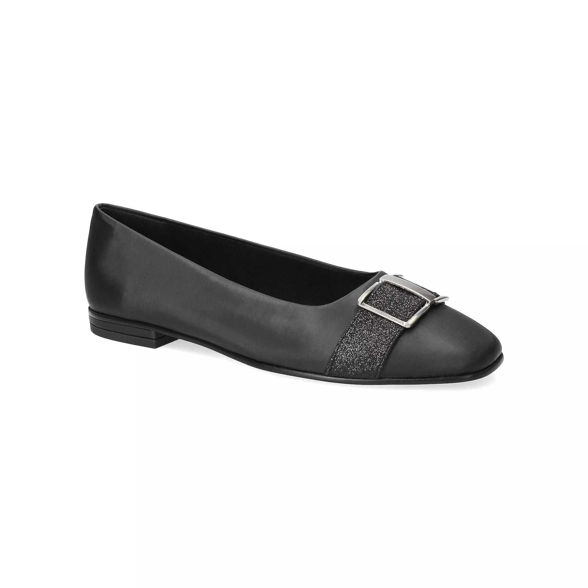 Discover chic comfort with these stylish square-toe flats, perfect for complementing your everyday wardrobe. Featuring a trendy design and a plush pillow foam footbed, these flats from Easy Street ensure all-day comfort while keeping your look effortlessly fashionable. Click this FOOTWEAR GUIDE to find the perfect fit and more! - https://www.kohls.com/feature/shoesizeguide.jsp. FEATURES: Trendy square toe design for a modern look, Pillow foam footbed and Easy Flex outsole for all-day comfort. DETAILS: Slip-on closure, Square toe, Heel height: 0.5-in., Imported. MATERIAL & CARE: Synthetic upper, Fabric lining, Rubber outsole, Foam footbed, Spot clean. Size: 8.5 XW. Color: Black Satin Glitter. Gender: female. Age Group: adult.