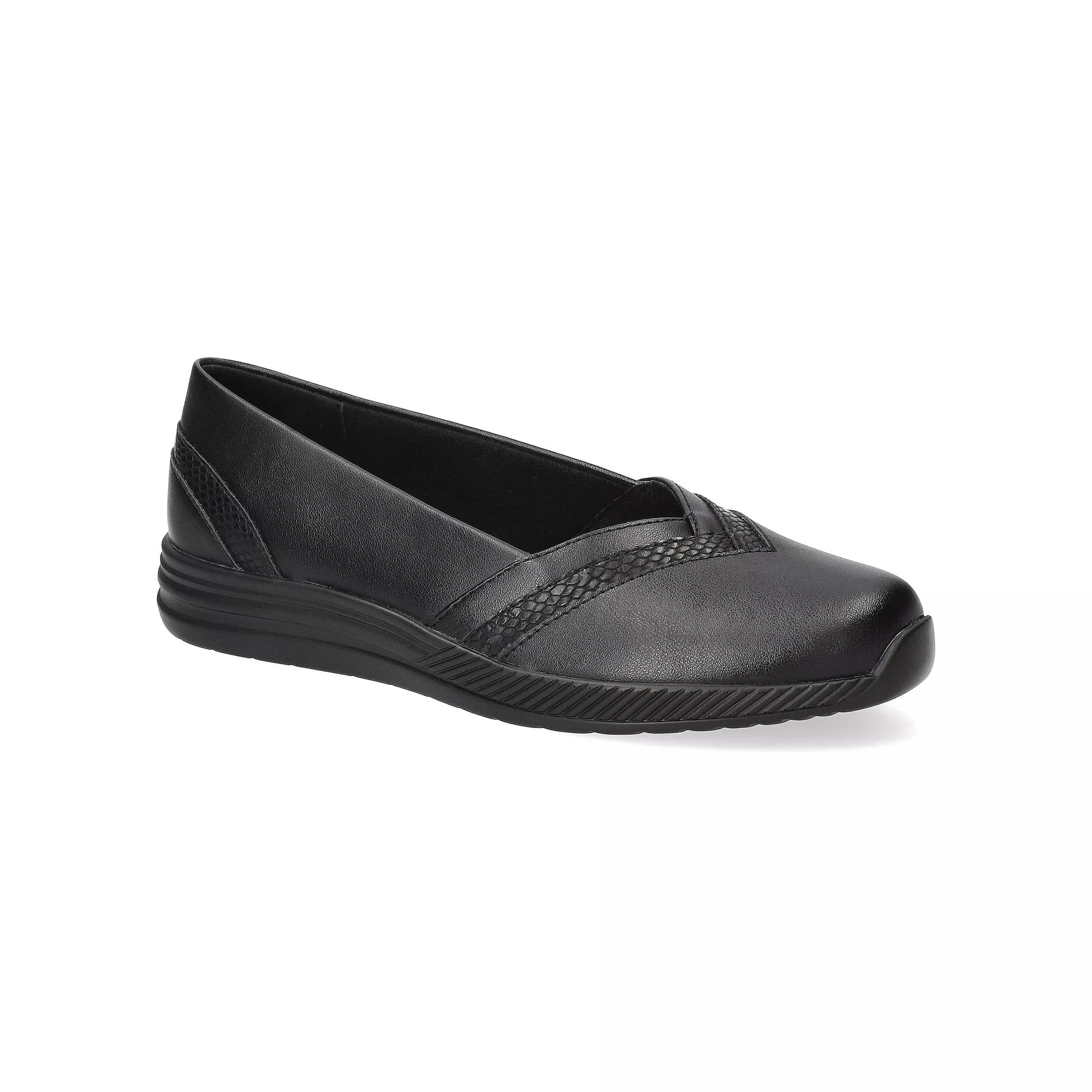 Discover the perfect blend of style and comfort with these delightful slip-on flats from Easy Street. Featuring a chic v-throat overlay and an ultra-flexible outsole, they promise easy all-day wear, making them your go-to choice for both casual outings and busy days on the go. Click this FOOTWEAR GUIDE to find the perfect fit and more! - https://www.kohls.com/feature/shoesizeguide.jsp. FEATURES: Ultimate Comfort Wave construction for all-day wear, Stylish v-throat overlay design, Super flexible and lightweight outsole, Comfort Wave removable insole for enhanced comfort. DETAILS: Round toe, Slip-on closure, Heel height: 1 in., Platform height: 0.5 in., Removable insole, Imported. MATERIAL & CARE: Synthetic upper, Foam footbed, Fabric lining, Manmade outsole, Spot clean. Size: 6 XW. Color: Black. Gender: female. Age Group: adult.