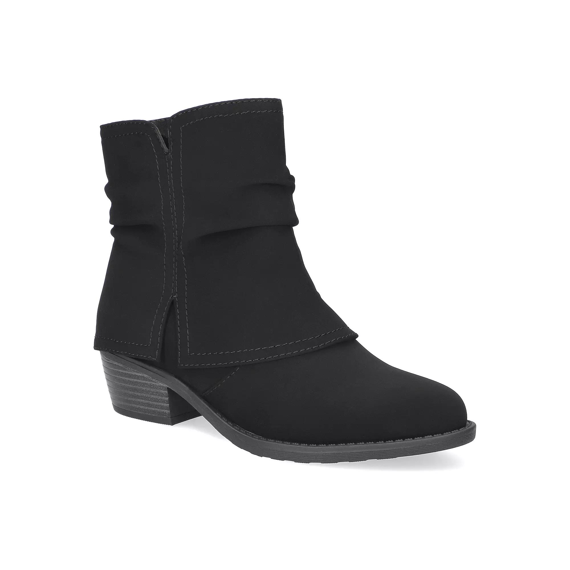 Celebrate style with the contemporary on-trend new Kudos ankle boot by Easy Street. Designed for fashion and comfort. The soft slouch overlay detail and underslung block heel will help transition any outfit to casual and fun Padded heel-to-toe for added comfort and an inside zipper for easy on/off.