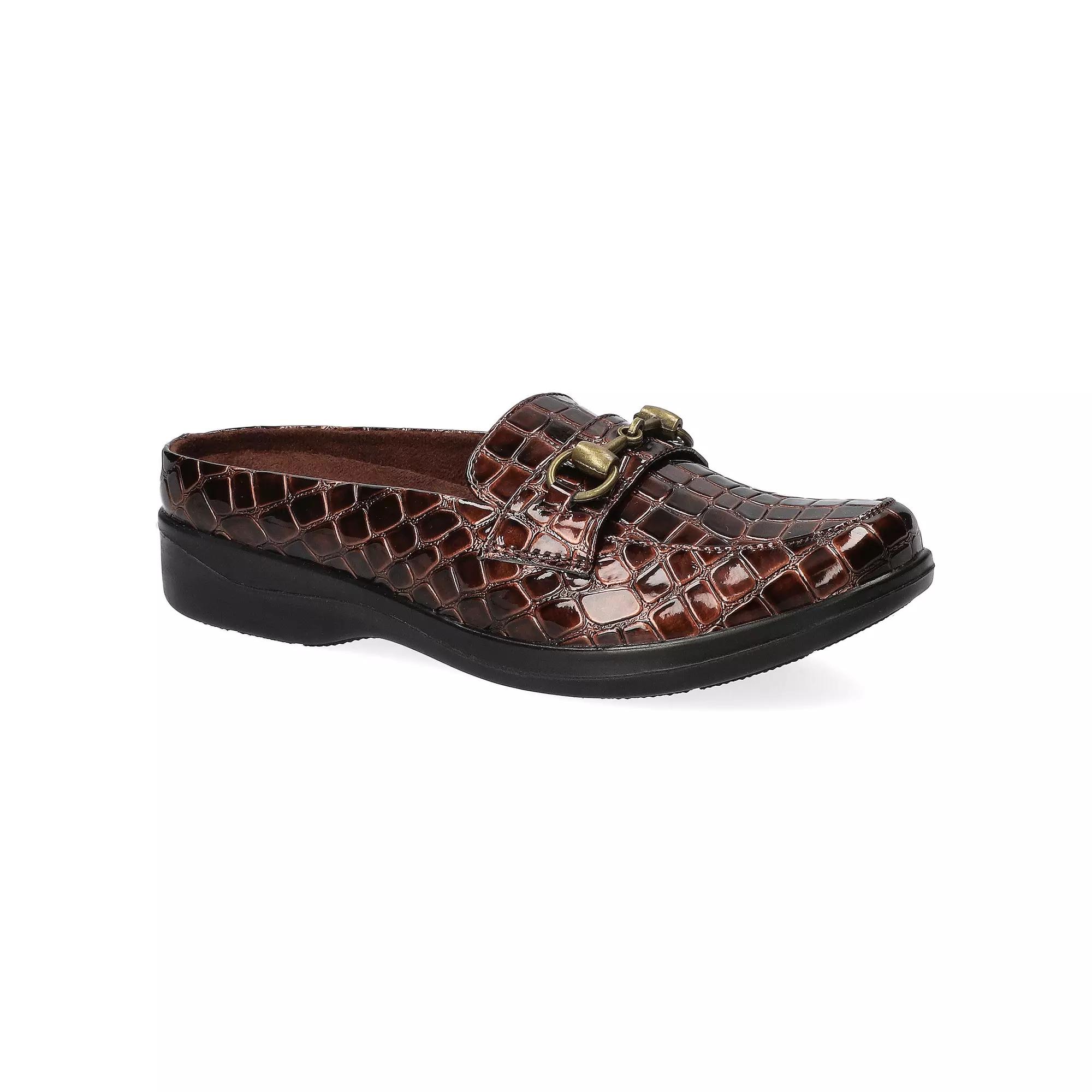 Step into comfort and style with these fabulous mules that make getting ready a breeze. Featuring a chic chain ornament and a lightweight design, these Easy Street mules are perfect for busy days at work or casual outings, ensuring you look polished while feeling like you're walking on clouds. Click this FOOTWEAR GUIDE to find the perfect fit and more! - https://www.kohls.com/feature/shoesizeguide.jsp. FEATURES: Sleek chain ornament for a modern touch, Easy Motion ultra-light insole for comfort, Flexible Comfort Wave construction for superior support, Versatile design suitable for workdays and weekend outings. MATERIAL & CARE: Synthetic upper, Manmade outsole, Fabric lining, Foam footbed, Spot clean. DETAILS: Slip-on closure, Round toe, Heel height: 1.25", Imported. Size: 8.5. Color: Brown Croco. Gender: female. Age Group: adult.