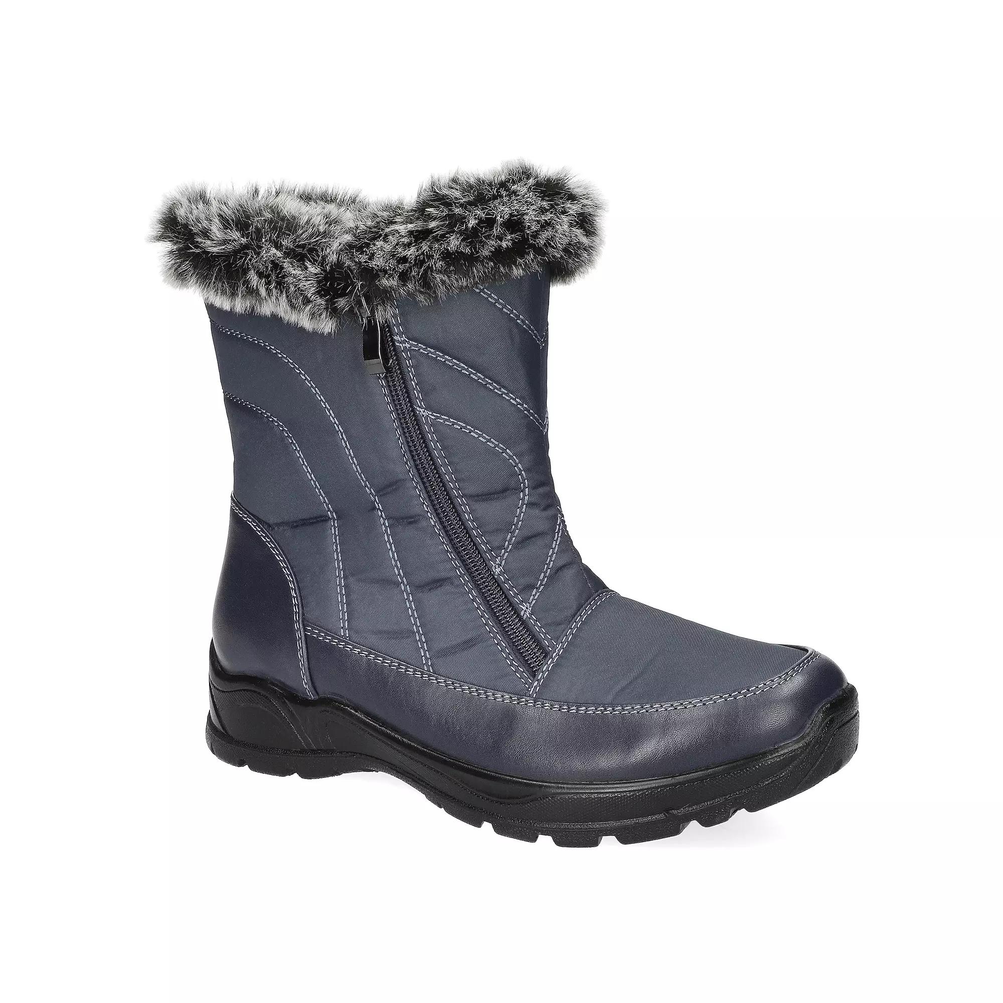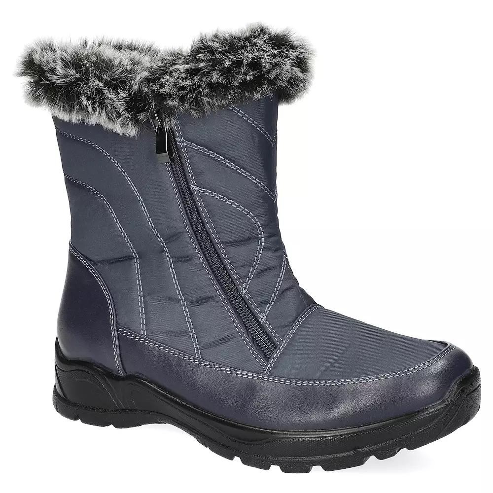 Stay warm and stylish this winter with Easy Street's Portland boots, designed for ultimate comfort and waterproof protection. Featuring a chic twin zipper design and a plush faux fur lining, these boots are perfect for braving the elements while maintaining your fashionable flair. Click this FOOTWEAR GUIDE to find the perfect fit and more! - https://www.kohls.com/feature/shoesizeguide.jsp. FEATURES: Lightweight and flexible outsole with deep channels for enhanced traction, Stylish twin zipper design for easy on/off access, Padded heel-to-toe insole for superior support and comfort, Soft faux fur lining for added warmth, Waterproof inner shell for reliable protection against moisture. DETAILS: Zipper closure, Round toe, 0.25-in. platform, 1.25-in. heel, Imported. FIT & SIZE: Ankle boot shaft detail, 6.25 inch boot shaft height, 14.5 inch boot shaft circumference. MATERIAL & CARE: Fabric upper, Manmade outsole, Fabric lining, Foam footbed, Spot clean. Size: 7. Color: Navy. Gender: female. Age Group: adult. Material: SYNTHETIC.