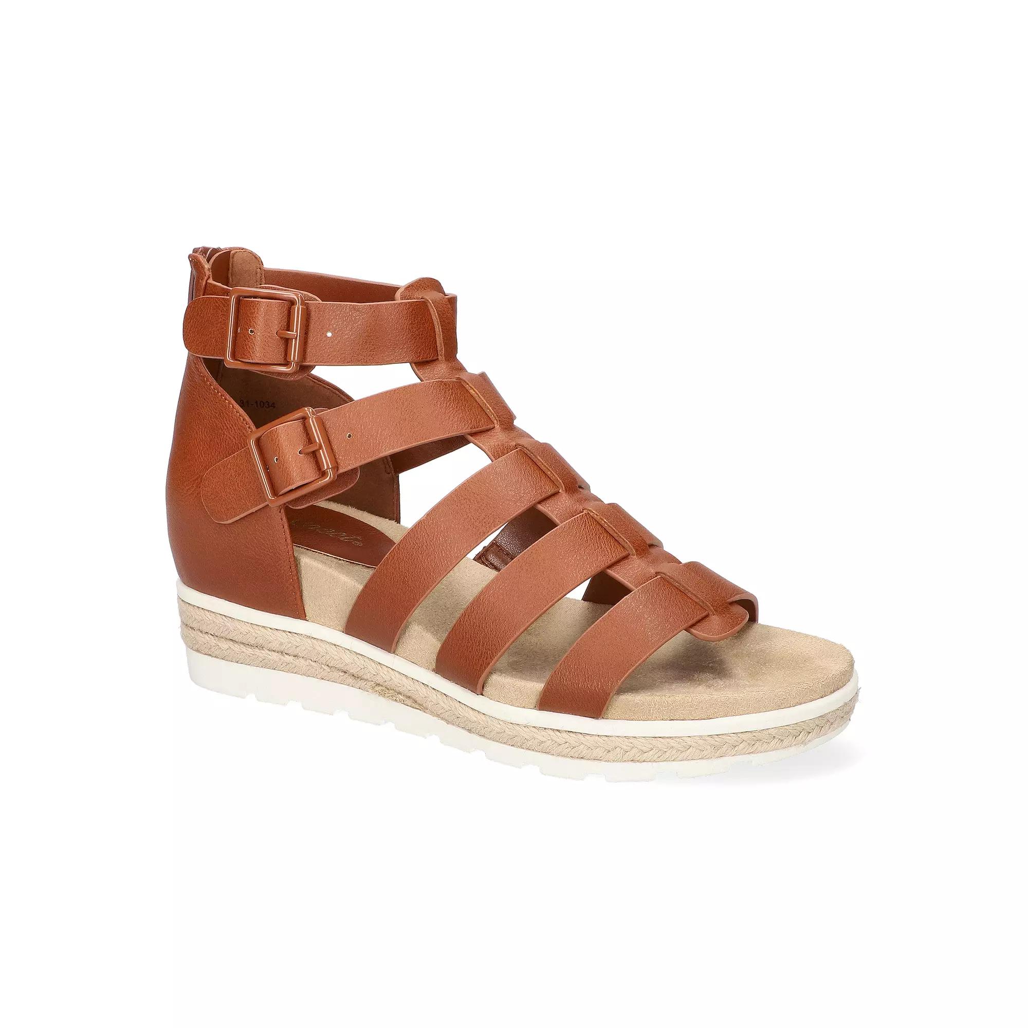 Look no further than the Simone by Easy Street for fashionable summer styling. Click this FOOTWEAR GUIDE to find the perfect fit and more! Look no further than the Simone by Easy Street for fashionable summer styling. Click this FOOTWEAR GUIDE to find the perfect fit and more! FEATURES Gladiator upper and espadrille-accented low platform outsole NA Two gored adjustable buckles Padded insoleDETAILS Synthetic upper Fabric lining NA TPR outsole Open toe Zipper closure Foam footbed 1.5-in. heel height .5-in. platform height Spot clean Imported NA Size: 7 XW. Color: Med Brown. Gender: female. Age Group: adult.