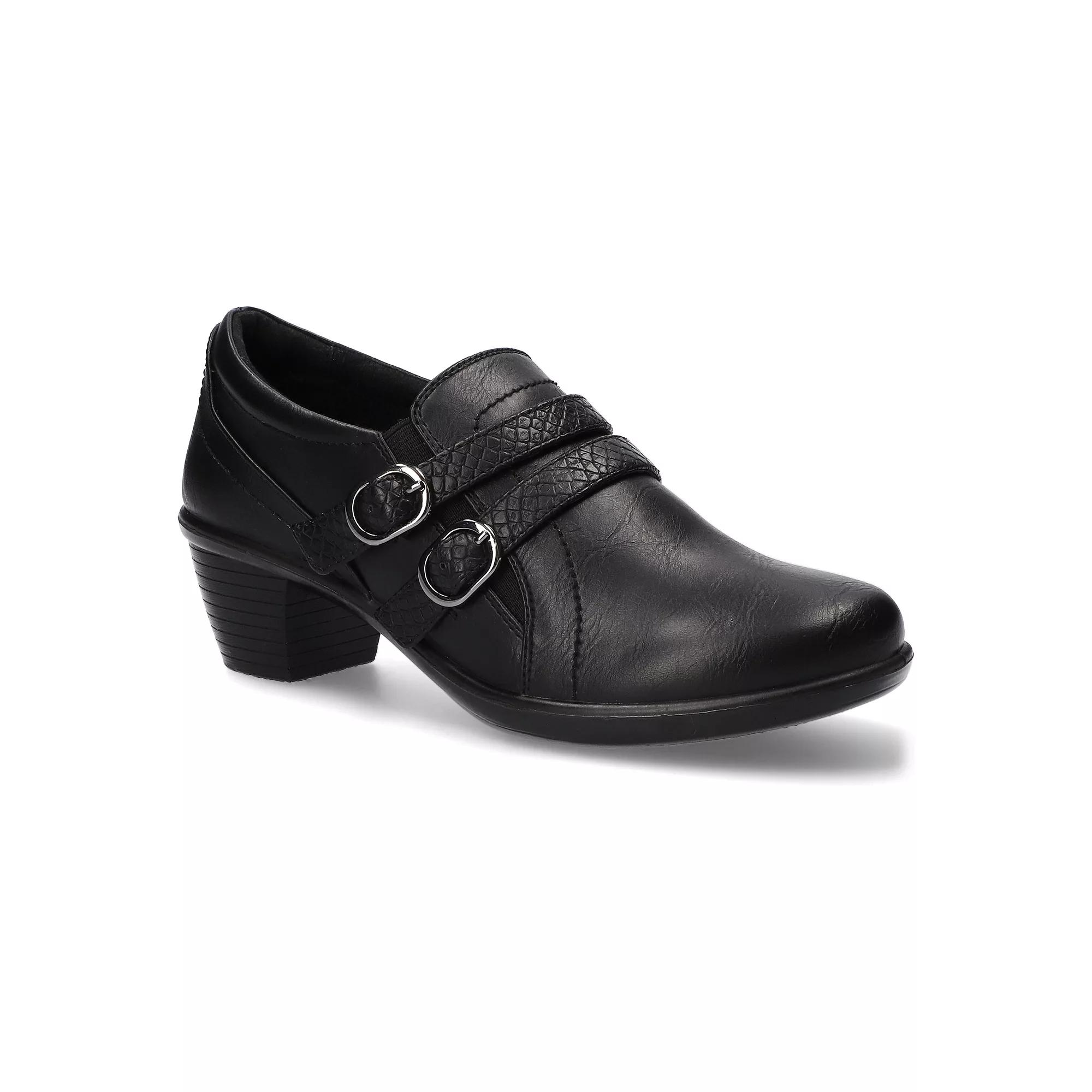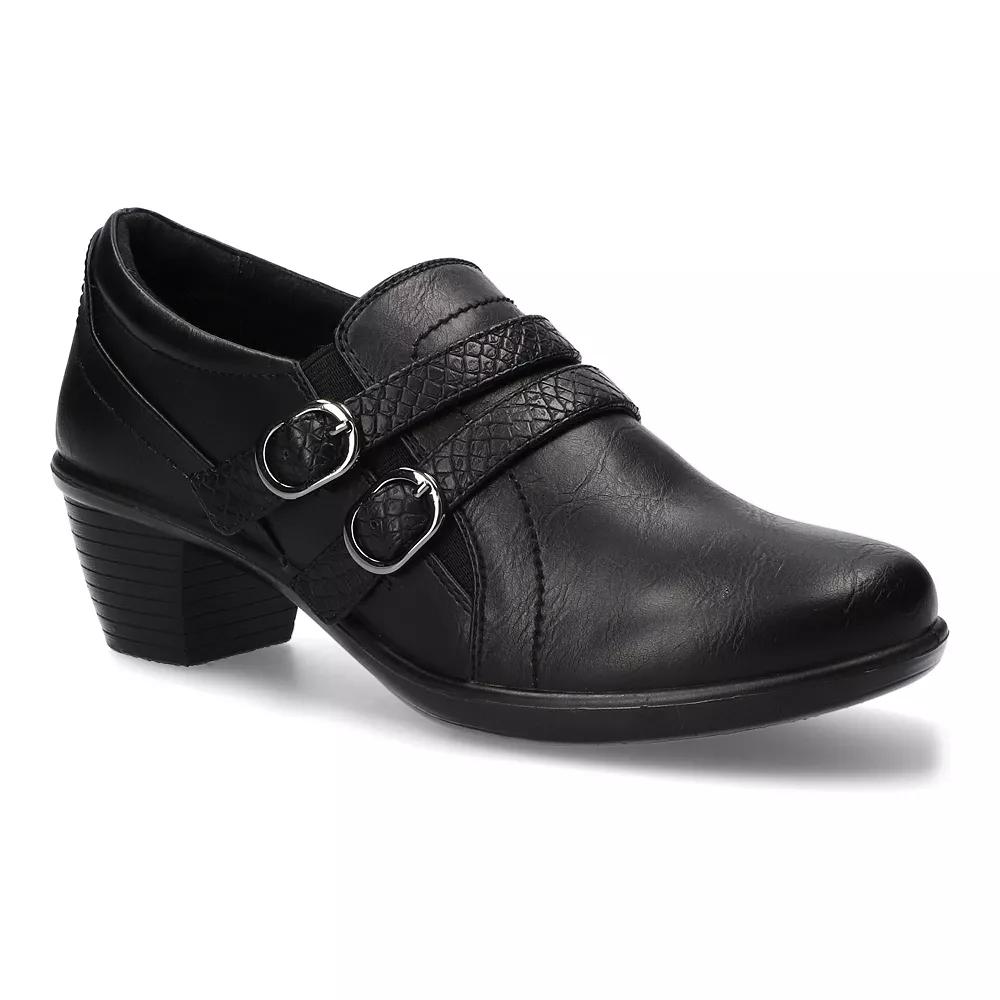 These Stroll ankle boots from Easy Street are designed to enhance your day with both style and comfort. Click this FOOTWEAR GUIDE to find the perfect fit and more! - https://www.kohls.com/feature/shoesizeguide.jsp. BOOT FEATURES: Double buckle ornamentation with a faux snake overlay, Lightweight Comfort Wave construction, Easy Motion ultra light insole and stretch for fit features help create the ultimate comfort experience. BOOT CONSTRUCTION: Synthetic upper, Fabric lining, Manmade outsole. BOOT DETAILS: Round toe, Zipper closure, Foam footbed, 1.75-in. heel. Size: 9 Wide. Color: Black. Gender: female. Age Group: adult.