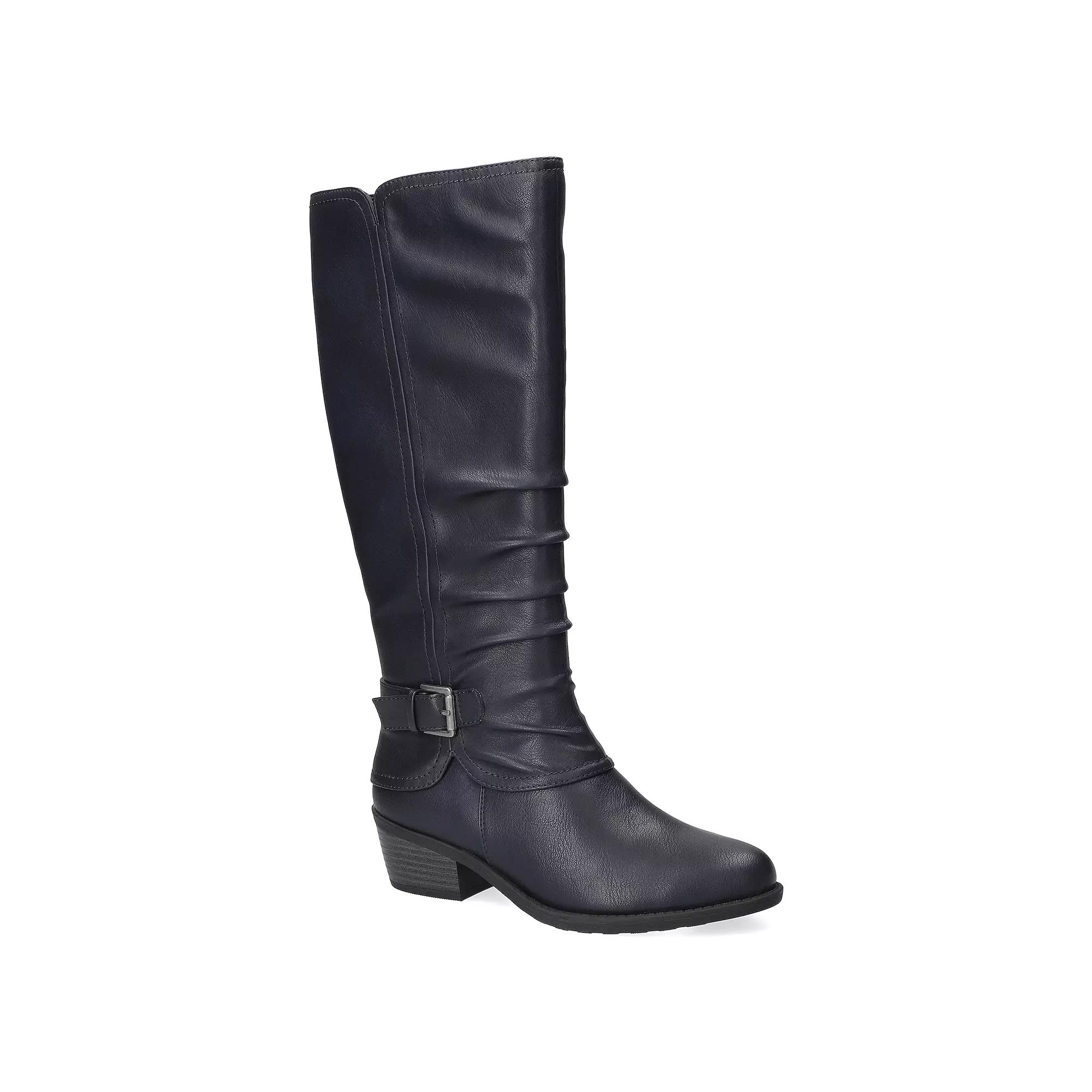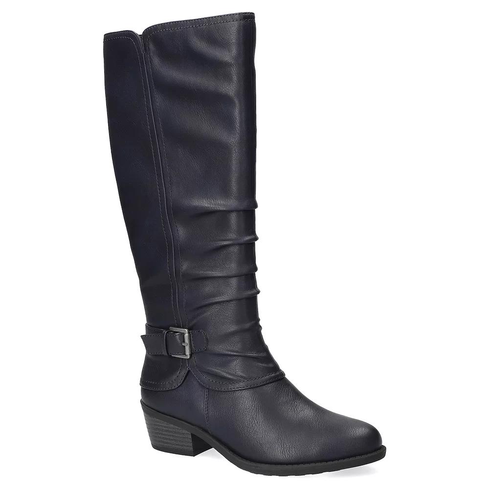 Make a striking impression with the Tenille tall boot from Easy Street, designed to fuse elegance with everyday comfort. Featuring a chic low block heel, stylish rusched upper, and a sleek inside zipper for effortless wear, these boots keep you looking fabulous while providing cushioned support for all-day adventures. Click this FOOTWEAR GUIDE to find the perfect fit and more! - https://www.kohls.com/feature/shoesizeguide.jsp. FEATURES: On-trend low block heel for stylish comfort, Rusched upper and buckle ornament for an elegant look, Flexible outsole and cushioned insole for all-day wear, Inside zipper for easy on/off access. DETAILS: Zipper closure, Round toe, 1.5" heel height, Imported. FIT & SIZE: Stretch tall boot shaft, 15 inch boot shaft height, 16.5 inch boot shaft circumference. MATERIAL & CARE: Synthetic upper, Manmade lining, TPR outsole, Foam footbed, Spot clean. Size: 9 XW. Color: Navy. Gender: female. Age Group: adult.