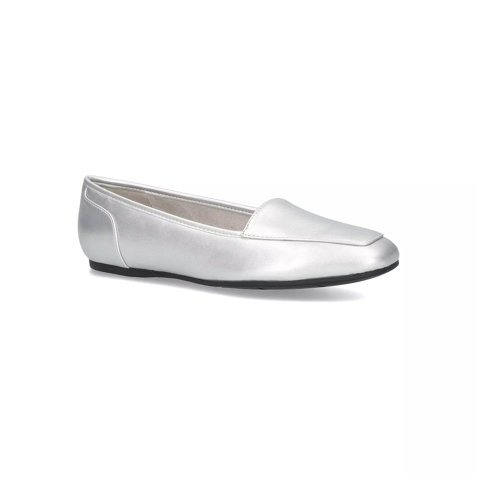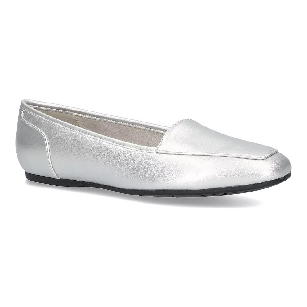 Step into the square toe trend with these Thrill flats by Easy Street. Click this FOOTWEAR GUIDE to find the perfect fit and more! - https://www.kohls.com/feature/shoesizeguide.jsp. SHOE FEATURES: Stylish square toe, Heel-to-toe superior foam footbed for all-day comfort, Durable outsole. SHOE CONSTRUCTION: Synthetic upper, Fabric lining, TPR outsole. SHOE DETAILS: Square toe, Slip-on, Foam footbed. Size: 6. Color: Silver. Gender: female. Age Group: adult.