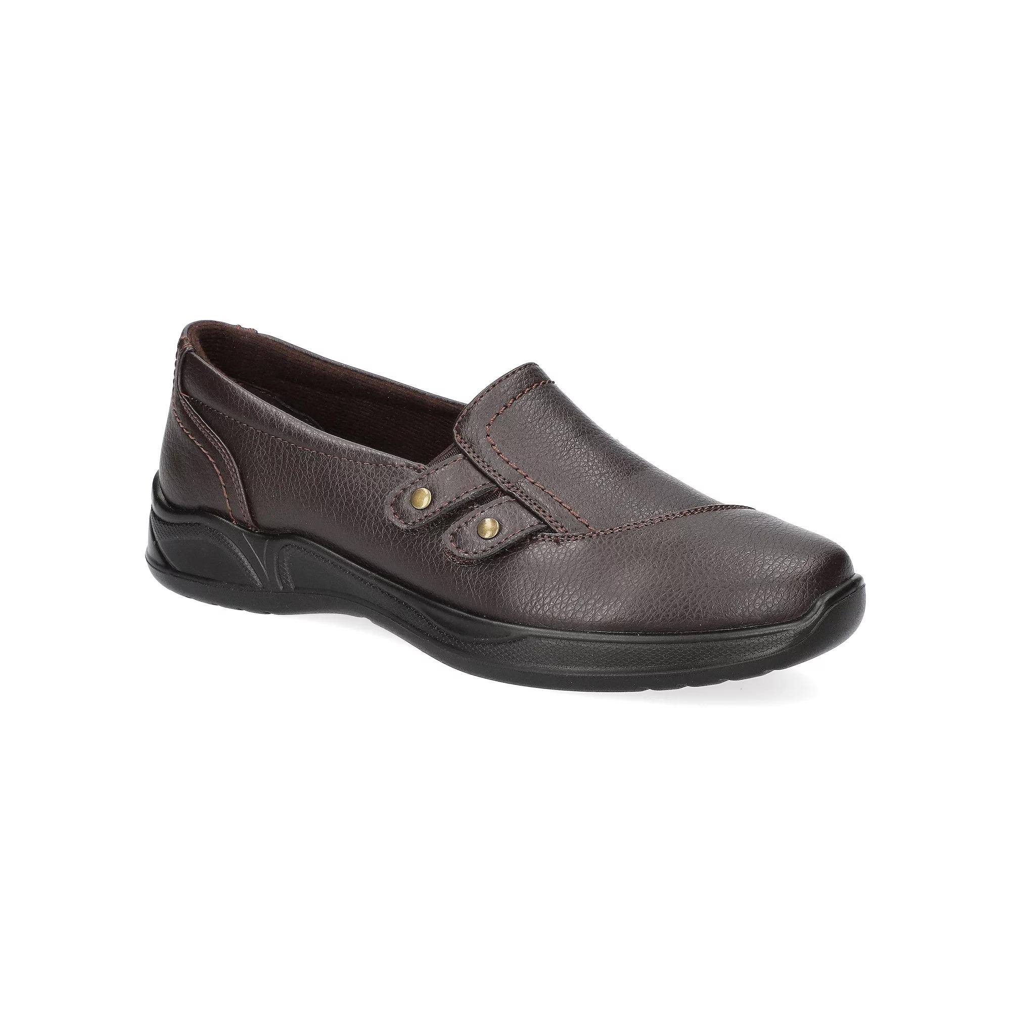 Step into style with these Easy Street Tune women's slip-on comfort flats. Click this FOOTWEAR GUIDE to find the perfect fit and more! - https://www.kohls.com/feature/shoesizeguide.jsp. FEATURES: Lightweight and flexible, Features ornament details. DETAILS: Synthetic upper, Fabric lining, Manmade outsole, Round toe, Slip-on, Foam footbed, 1-in. heel, Spot clean, Imported. Size: 8. Color: Brown. Gender: female. Age Group: adult.
