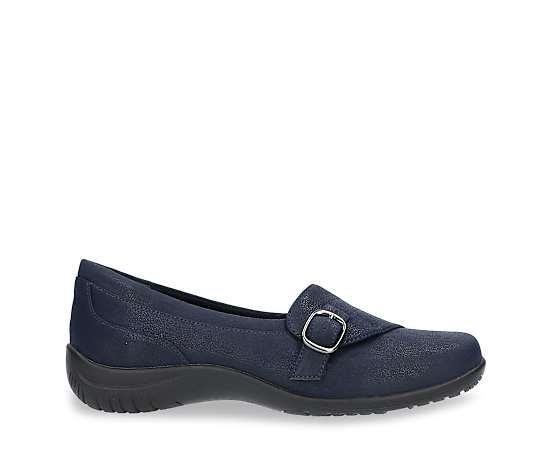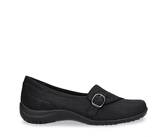 Easy Street Cinnamon Women's Slip-On Sneaker Spice up your usual look with the Cinnamon women's Slip-On Sneaker from Easy Street. With a faux leather upper and buckle accent, this Slip-On Sneaker also features a square toe and fabric lining. The Padded footbed and synthetic outsole offer Cushioned traction to keep you steady all day long. Synthetic upper Slip-On Buckle accent Padded footbedSynthetic outsole