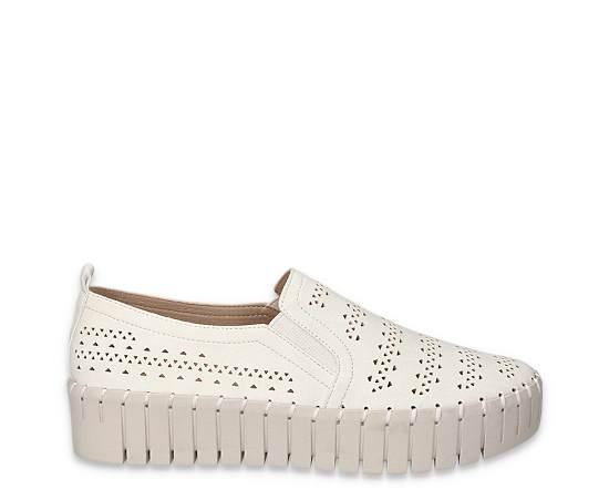 Easy Street Peppy Women's Slip-On Sneaker - WhitePut some pep in your step with the Easy Street Peppy Slip-On Sneaker. Featuring a perforated upper and Comfort Wave construction, this athleisure Slip-On has elastic gore inserts for a secure fit. The ultra-light Easy Motion by Easy Street insole provides all day comfort, while the platform height offers a super flexible lift. Synthetic upper Slip-On w/ elastic goringPerforated detailingRemovable Easy Motion by Easy Street insole1 platform; 1 wedge heel