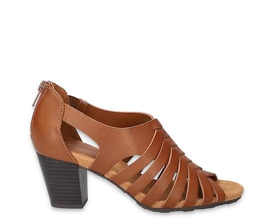 Easy Street Vanni Women's Sandal CognacMake sure summer's style is on point in the Easy Street Vanni Sandal. Featuring a faux leather upper in an interwoven cross pattern, this Shoe has a Cushioned footbed and Easy Flex outsole to comfort your steps all-day long. The heel gives nice lift. Synthetic upper Back zipper closure Cushioned footbedEasy Flex outsole2 heel