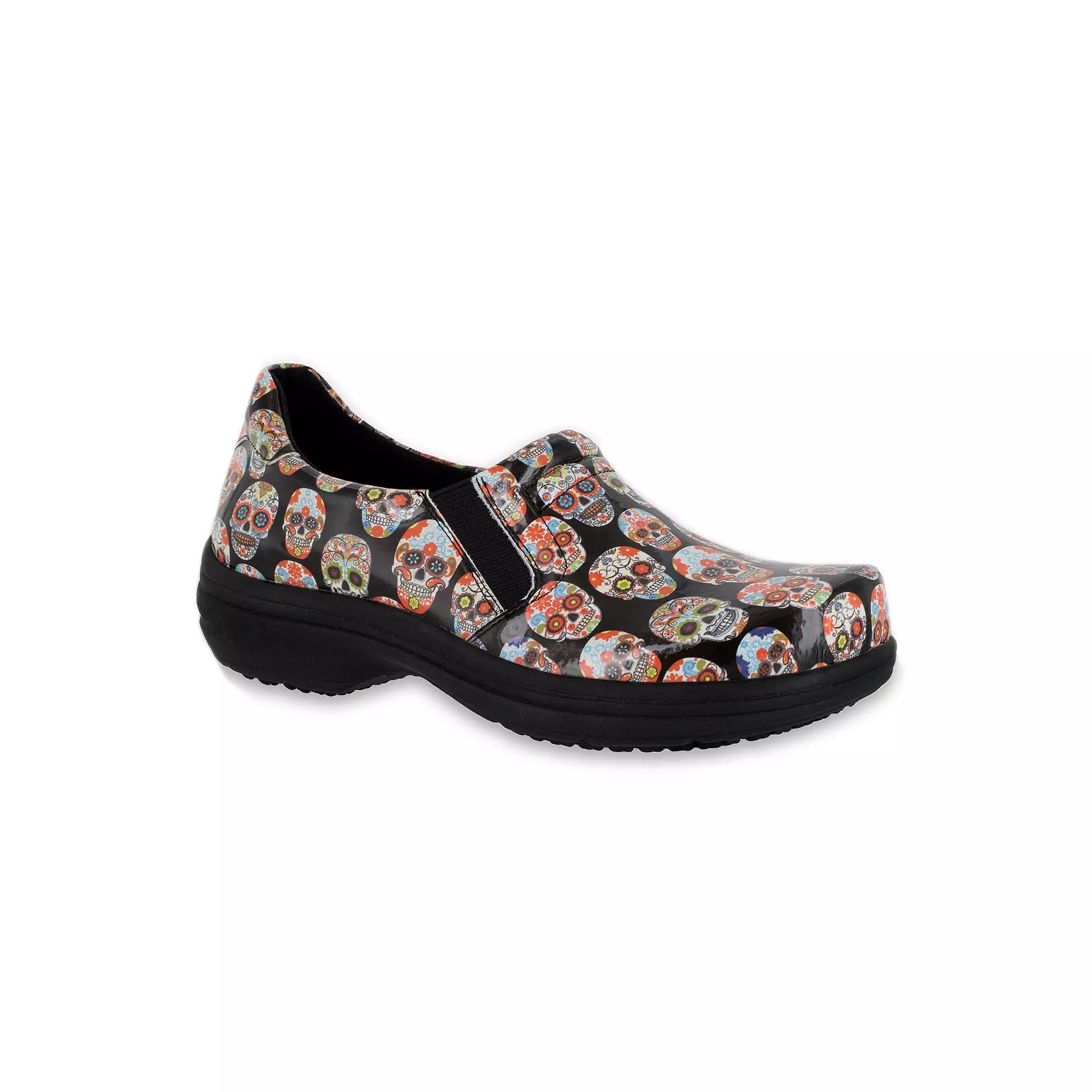 Feel your best every day wearing these women's Bind shoes from Easy Works by Easy Street. Click this FOOTWEAR GUIDE to find the perfect fit and more! - https://www.kohls.com/feature/shoesizeguide.jsp. SHOE FEATURES: Dual elastic stretch panels. Water & oil slip resistant. Removeable antimicrobial insole. Treaded sole. SHOE CONSTRUCTION: Leather upper. Tricot lining. EVA midsole. Rubber outsole. SHOE DETAILS: Round toe. Slip on. Padded footbed. 1-in. heel. The antimicrobial properties do not protect users or others against bacteria, viruses, germs, or other disease organisms. Size: 12. Color: Skull Patent. Gender: female. Age Group: adult. Material: OTHER MATERIAL.