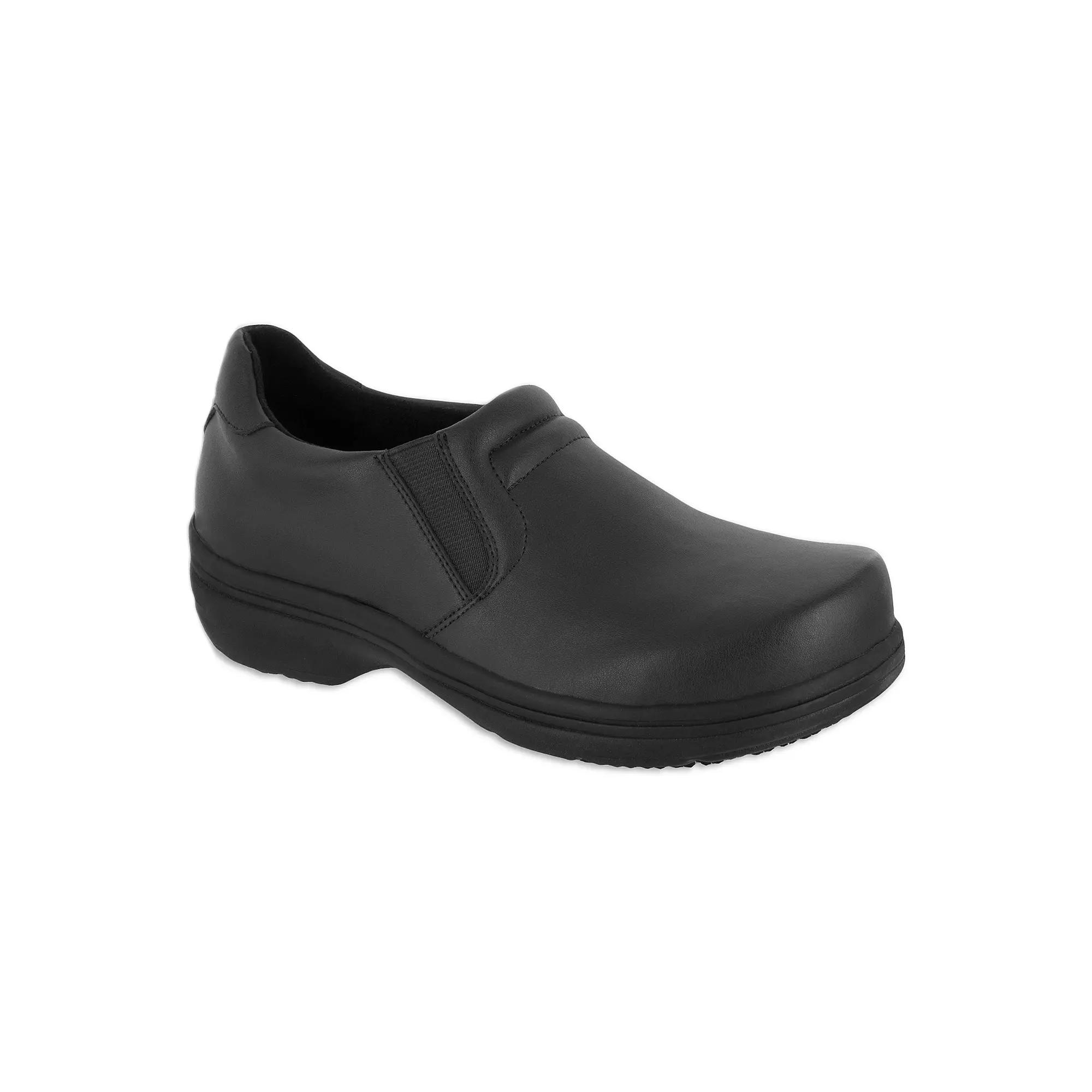 Feel your best every day wearing these women's Bind shoes from Easy Works by Easy Street. Click this FOOTWEAR GUIDE to find the perfect fit and more! - https://www.kohls.com/feature/shoesizeguide.jsp. SHOE FEATURES: Dual elastic stretch panels. Water & oil slip resistant. Removeable antimicrobial insole. Treaded sole. SHOE CONSTRUCTION: Leather upper. Tricot lining. EVA midsole. Rubber outsole. SHOE DETAILS: Round toe. Slip on. Padded footbed. 1-in. heel. The antimicrobial properties do not protect users or others against bacteria, viruses, germs, or other disease organisms. Size: 9 Wide. Color: Black. Gender: female. Age Group: adult. Material: OTHER MATERIAL.