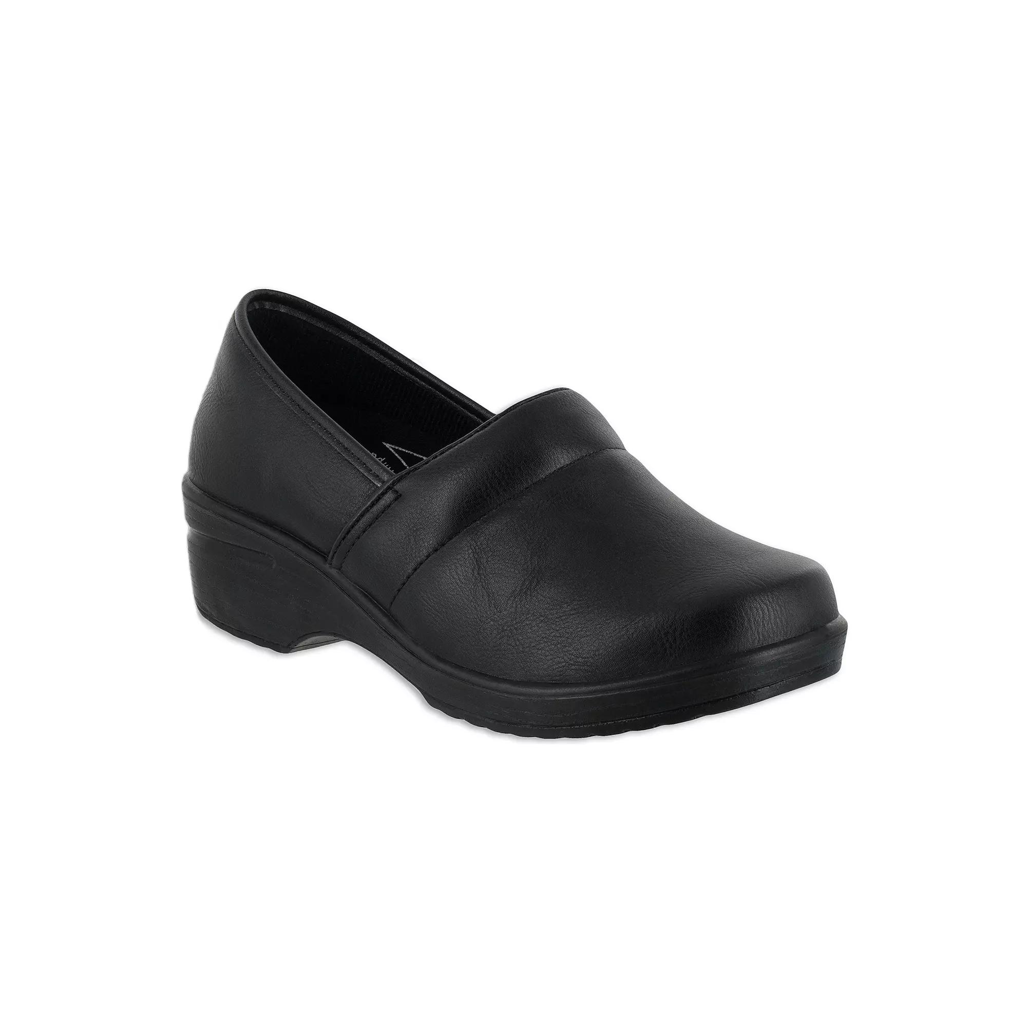 Feel your best every day wearing these women's Lyndee shoes from Easy Works by Easy Street. Click this FOOTWEAR GUIDE to find the perfect fit and more! - https://www.kohls.com/feature/shoesizeguide.jsp. SHOE FEATURES: Slip resistant. Removeable antimicrobial insole. Treaded sole. SHOE CONSTRUCTION: Polyurethane upper. Tricot lining. EVA midsole. Manmade outsole. SHOE DETAILS: Round toe. Slip on. Padded footbed. 1.75-in. heel. The antimicrobial properties do not protect users or others against bacteria, viruses, germs, or other disease organisms. Size: 6.5 Wide. Color: Black. Gender: female. Age Group: adult. Material: OTHER MATERIAL.