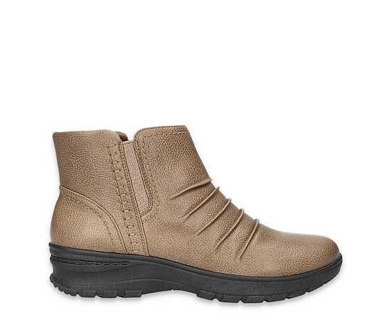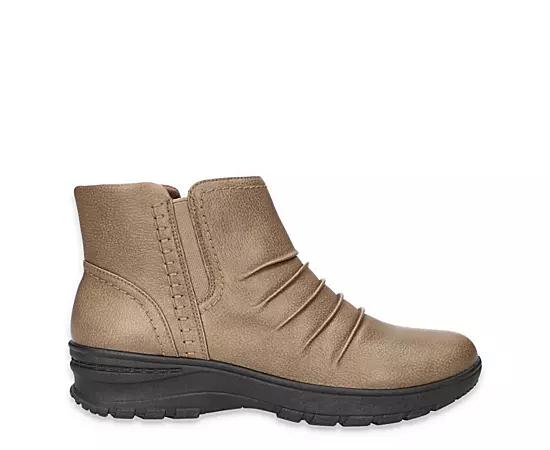Easy Works Women's Autumn Boot ie - TaupeThe Autumn Boot ie is a stylish choice for fall, featuring stitch detailing and a trendy mini lug non-marking slip-resistant outsole. Enhanced with the Easy Motion Pro Comfort system and a removable antimicrobial contoured insole, these Boot ies offer all-day comfort and support. The stretch-for-fit comfort ensures a perfect fit, making the Autumn a versatile option to pair with your favorite casual outfits. Synthetic upper Inner zipper enclosure1 heel heightRound toeAntimicrobial insole for comfort